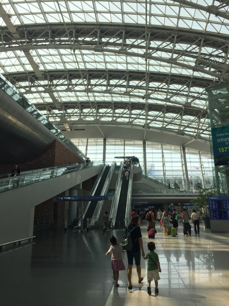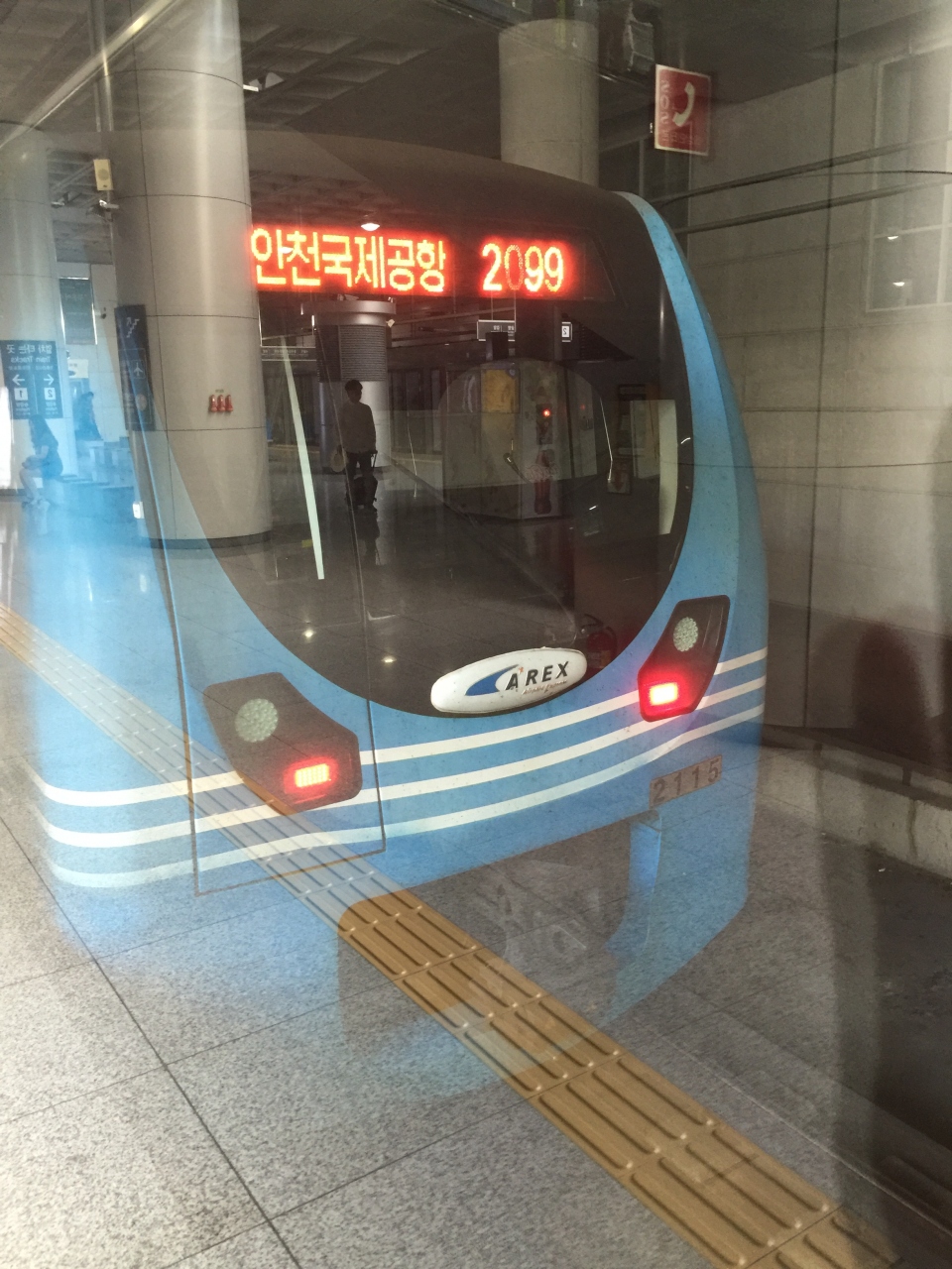 シティーホールから地下鉄を乗り継いで仁川国際空港駅まで1時間半かかった