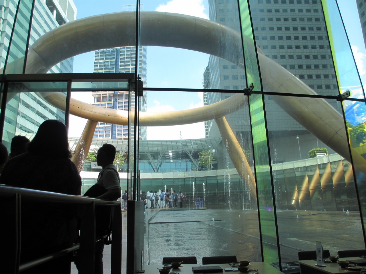 風水に基づいて造られた世界最大の噴水とのことで、噴水の回りのは丸いオブジェがありました。