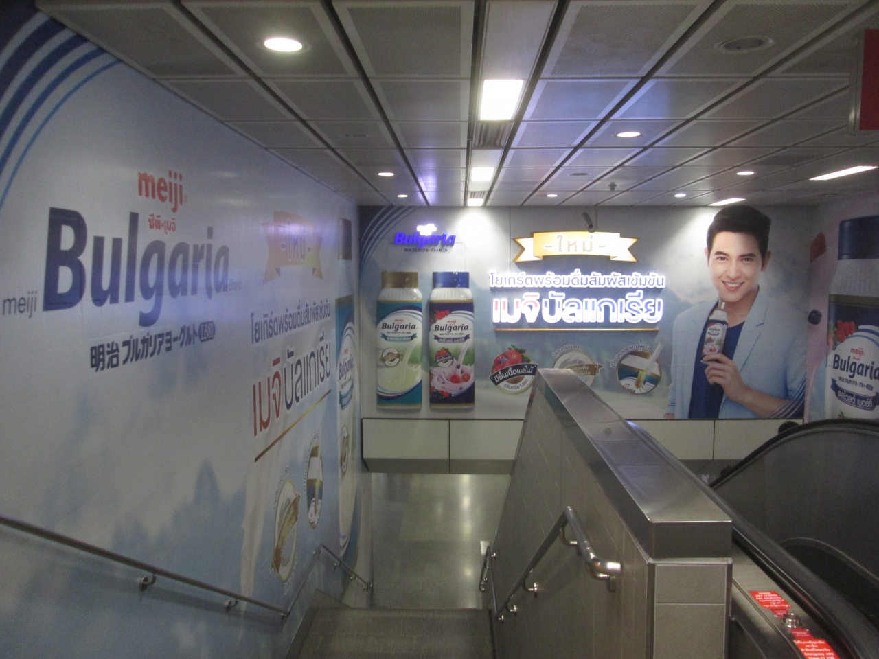 スクンビット駅構内に大きい広告看板を見かけました。良く見ると日本語で書かれた日本のヨーグルトを宣伝するものでした。スーパーマーケットにタイ産のヨーグルトはありますが、値段が高くても日本製のヨーグルトが人気です。