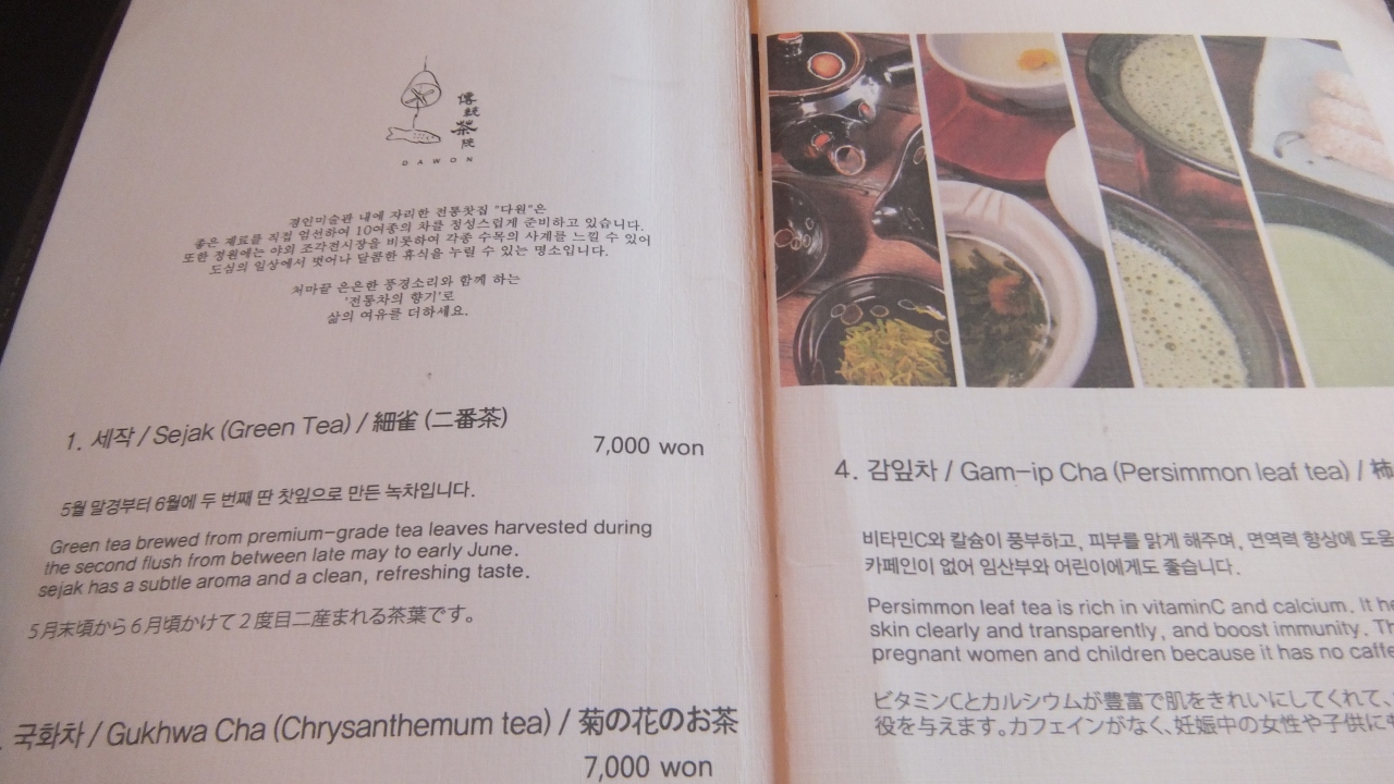 メニューには日本語表記もあり、伝統茶の内容・種類もわかり易いので安心。