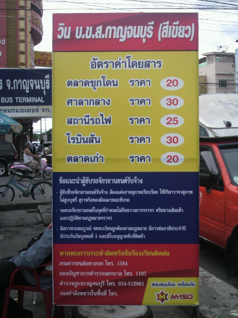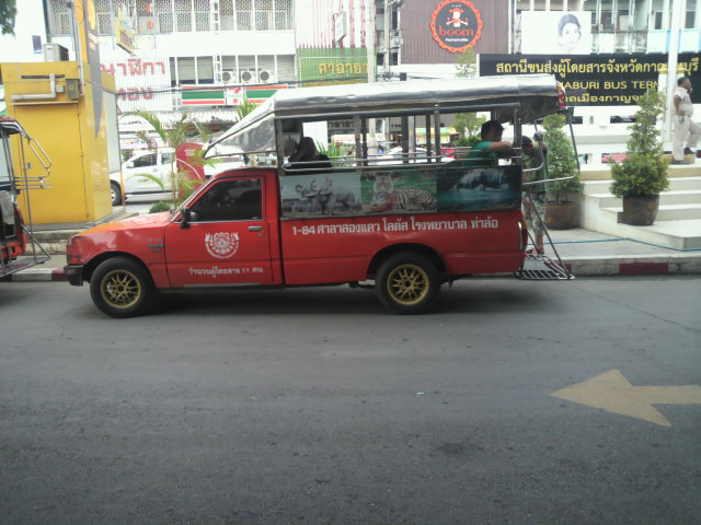 カンチャナブリのソンテウは、便利ですが、やや高いかもしれません。確認が大事