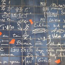 モンマルトルエリア、アベス駅の近くにあります。大きな壁に、世界中の言葉で「愛している」という意味のことが書かれています。