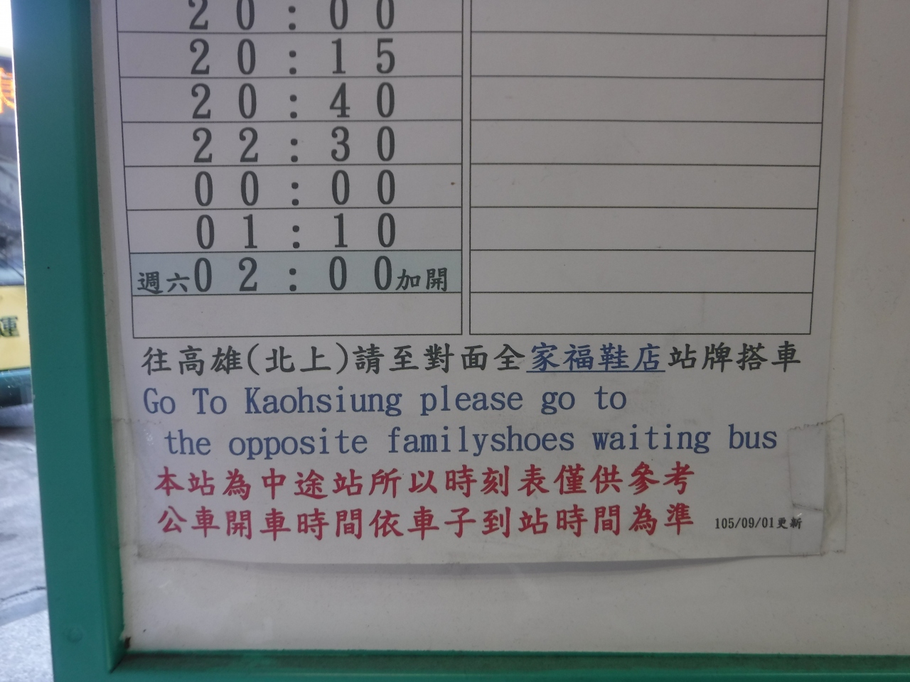 東港に行った際、高雄からの行きは高雄駅近くの乗り場からミニバスを利用し華僑市場前で降りましたが、帰りはこの屏東客連のバスを利用しました。