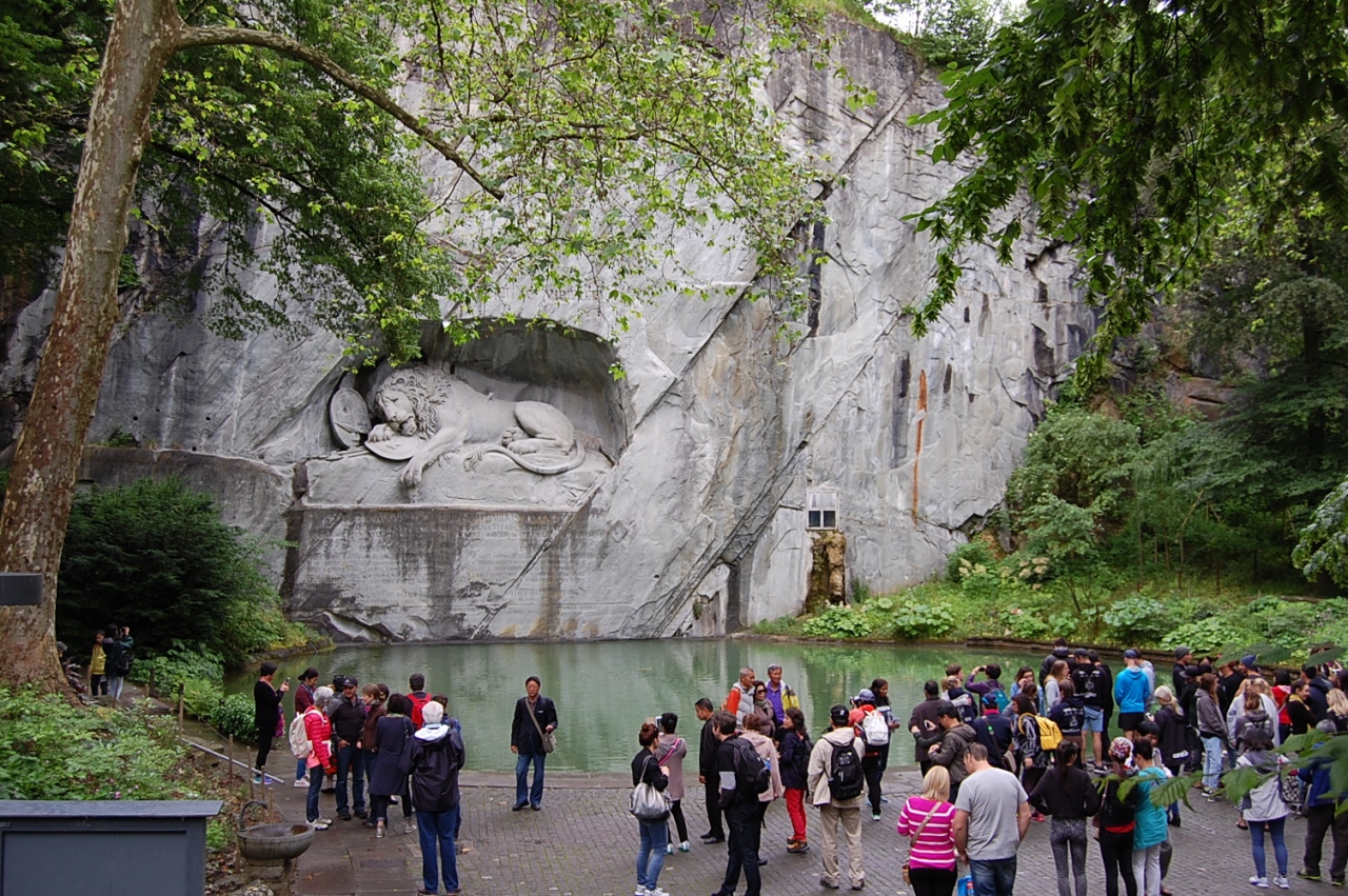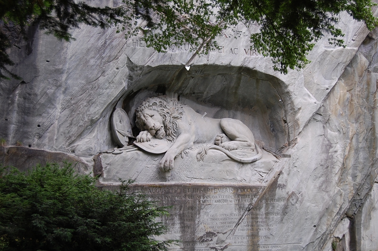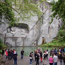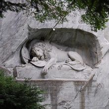 1792年、フランス革命の際中にルイ16世を守ろうとして命を落としたスイス人の傭兵たちの慰霊碑として造られたそうです。