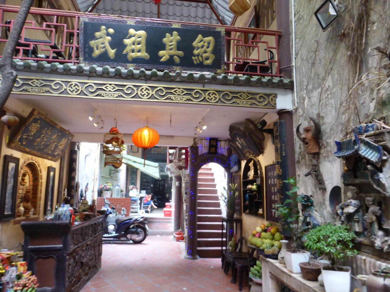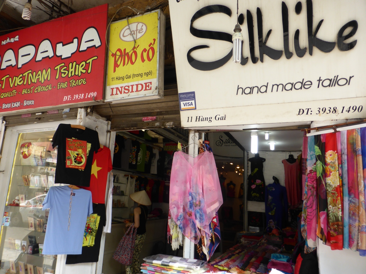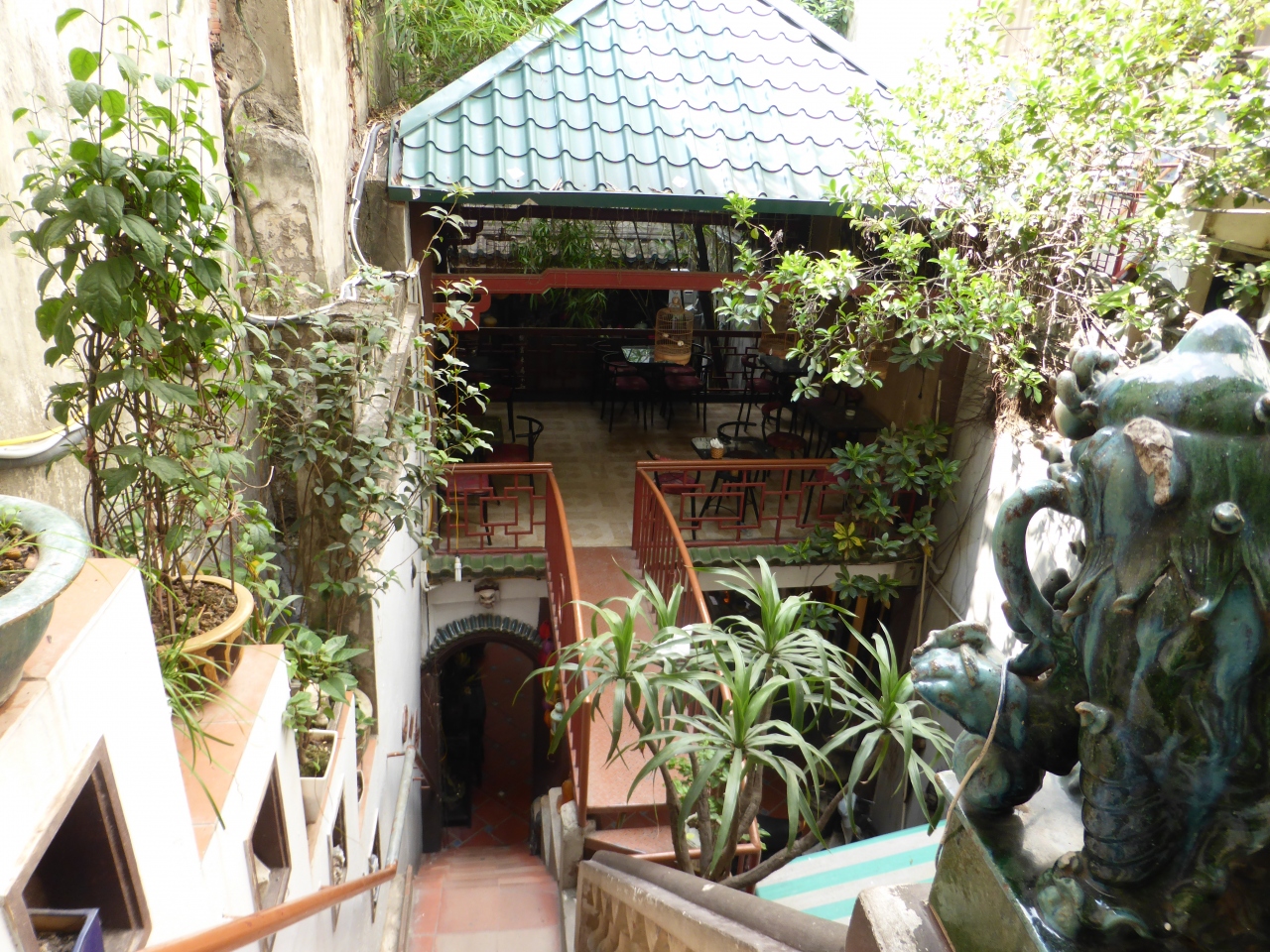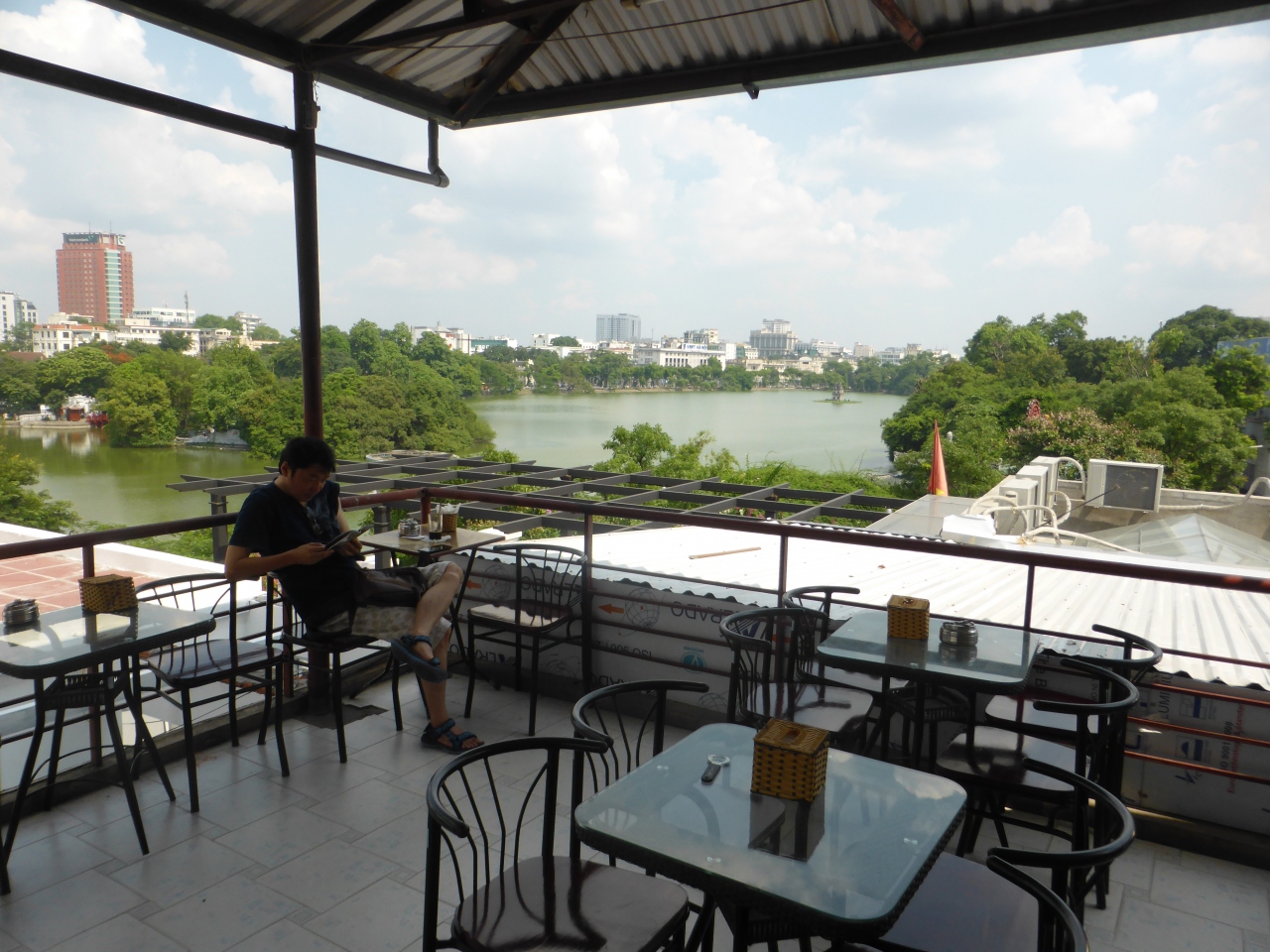 ホアンキエム湖を見渡せるテラス席があるとガイドブックに載っていたので行ってみました。前日にハロン湾ツアーで一緒になった方が大体の場所を教えてくれていたので行けましたが、初めての人は店の看板の写真とか見てから行った方がいいと思います。通りに面しているのはシルクのお店ですが、その店の間にある廊下を奥に進んでいくと、裏側に建物があります。1階でお会計を済ませてから狭い階段→螺旋階段と上って行くとテラス席に到着!かなり探検気分で楽しい!エッグコーヒーが有名らしいのですが、あえてパッションフルーツジュースを頼みました(笑)冷えてて美味しかったです!