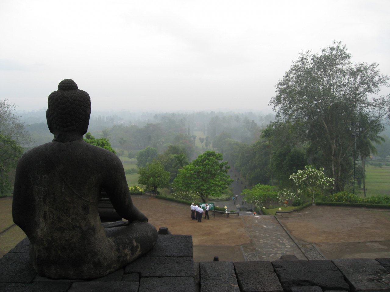 ほぼ正方形の形をしたボロブドゥールを取り囲む形で整備された公園で、青々とした芝生と樹木が黒い石材でできたボロブドゥール遺跡ときれいなコントラストを作っていました。オススメは公園をボロブドゥールを中心に一周し、条件の整ったアングルで写真を撮る事です。ぜひ試してみてください。