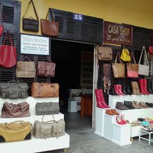 場所はPhan Boi Chau通りの25番地、ホイアン旧市街の東端。チャンズオン一族が4世代もの間住み続けている古い家屋です。屋根や2階部分を見ると確かにそうだと思えますが、1階部分が鮮やかな色に塗られてしまっているのが残念です。現在は皮のバッグや靴などを売るショップになっています。中を覗くと部屋の隅でハンモックに揺られながら老人が1人眠っていました。時が止まったような空気が流れていました。