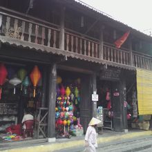 場所はハイバーチュン通りとの交差点のやや東寄り。この家屋は木造建てで変に塗装したり改築したりせず昔のままのたたずまいが残っており何ともいい味を出しています。現在はランタンショップになっています。店内ではランタン作りの真っ最中。ランタンの作り方がよくわかります。家屋とランタン、両方見学できてお得なスポットです。