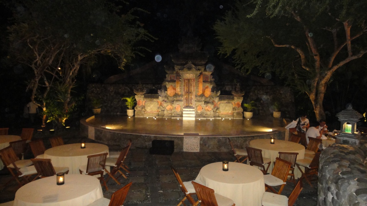 グランドハイアットホテルにあります。日替わりでバリの伝統舞踊のショーが行われ、ショーを見ながらインドネシア料理のビュッフェを食べられます。種類は多く美味しいですが値段は高めです。最後に踊り子さんたちと写真を撮ることができました。