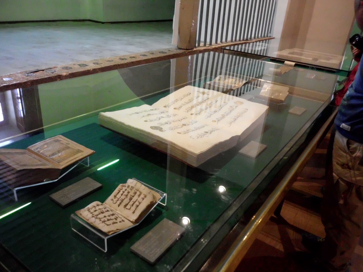 イスラム教神秘主義のメヴラーナ教団の総本山で、もとは神学校でした。こちらを訪れるために、コンヤの街に入りましたが、そのときから通りを歩く人の服装が一変して、博物館の敷地内は、男女共に黒づくめの衣装に身を包んだ、厳格なイスラム教徒の人ばかりになります。明るい服装をしているのは、観光客くらいです。博物館には靴の上から専用のビニール・カバーを装着して入館します。意外にもこじんまりとして地味な入口です。展示物には巨大なものと極小のものと2種類のコーランがあったり、エキゾチックな雰囲気が漂っています。ミュージアム・ショップではお土産を買ったり、お茶を楽しむことができます。