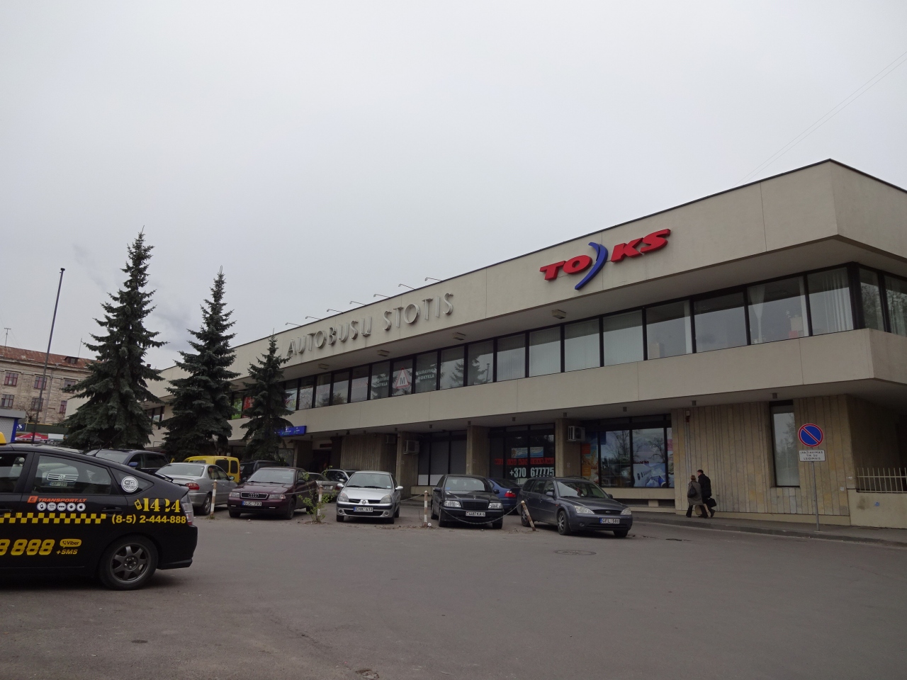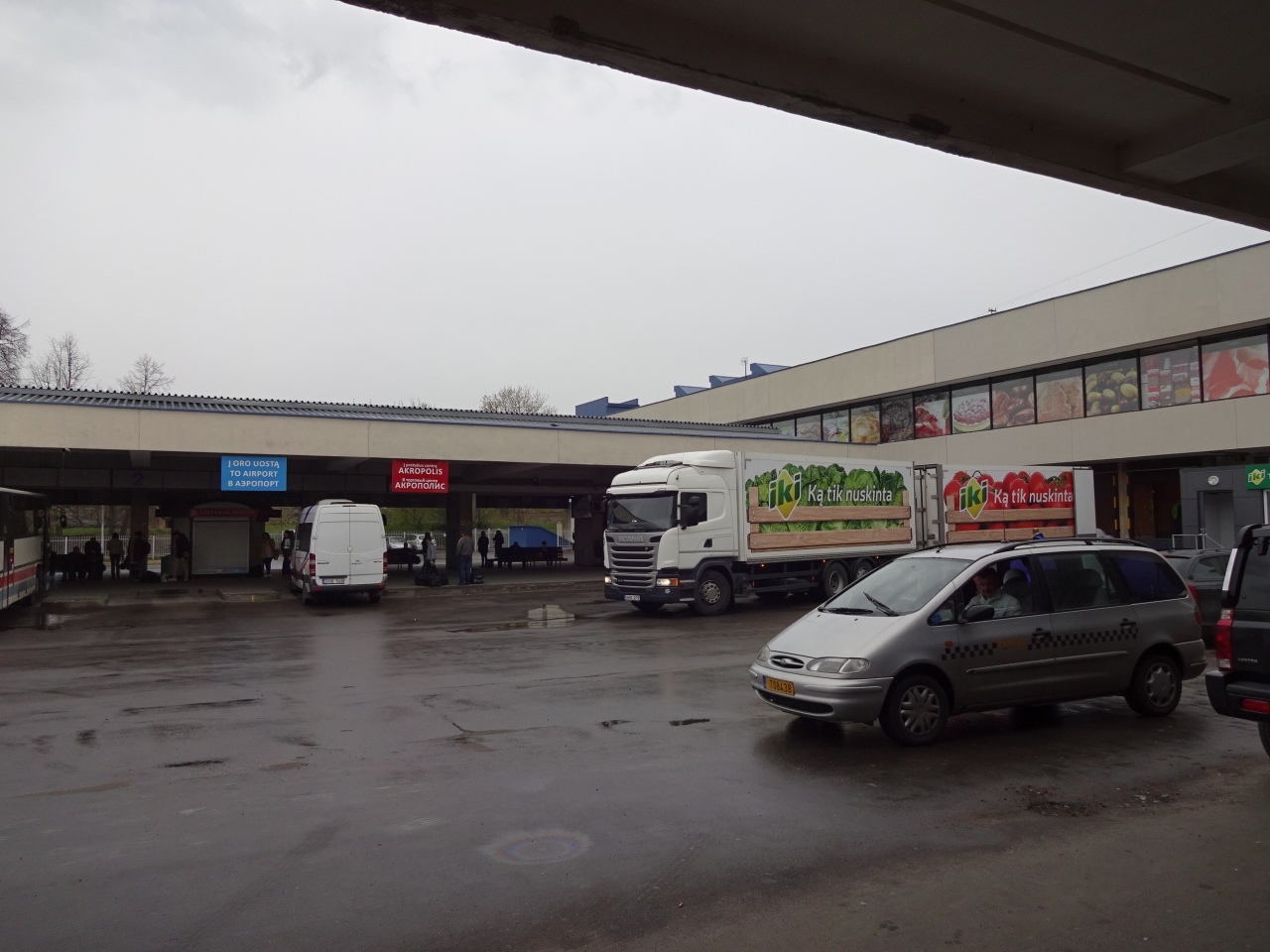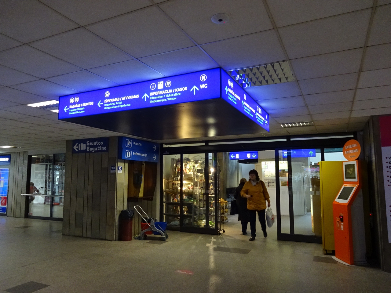 バスターミナルは駅を出てすぐ左手にあります。建物内には色々なお店が入っていました。コンビニに2EURくらいの小さいシャコーティス(リトアニア名物のバームクーヘンのようなお菓子)が売っていましたが、結局買わなかったことを後悔しています。シャコーティスってどこのスーパーにも売ってるけど、どれも一つ1kgくらいあって10EURくらいするんですよね。