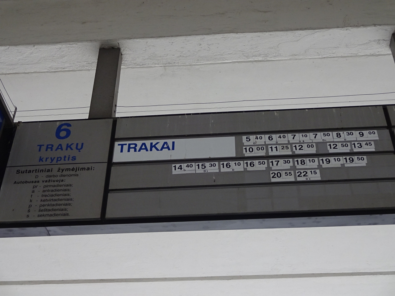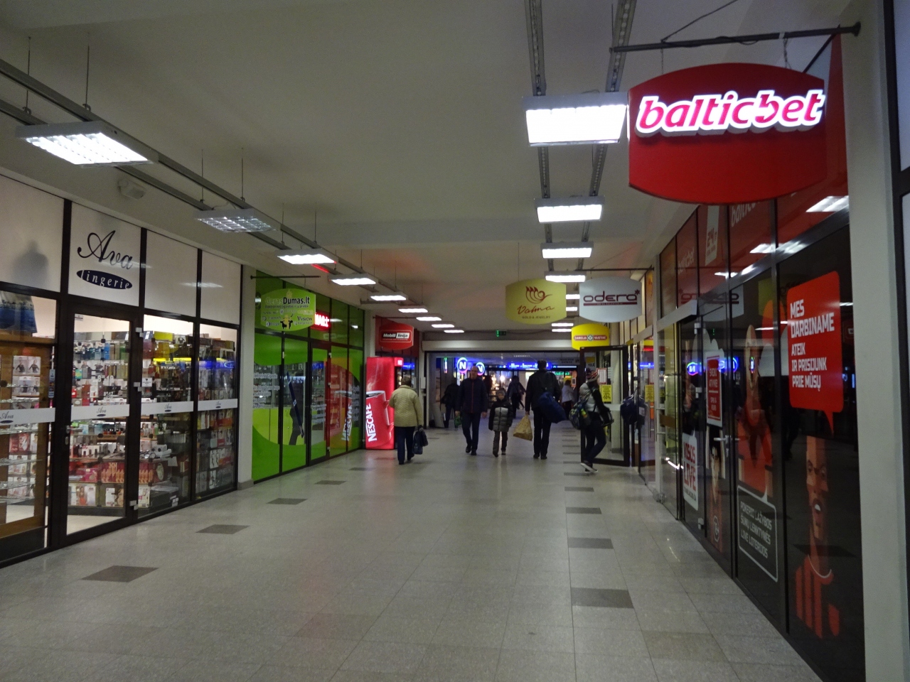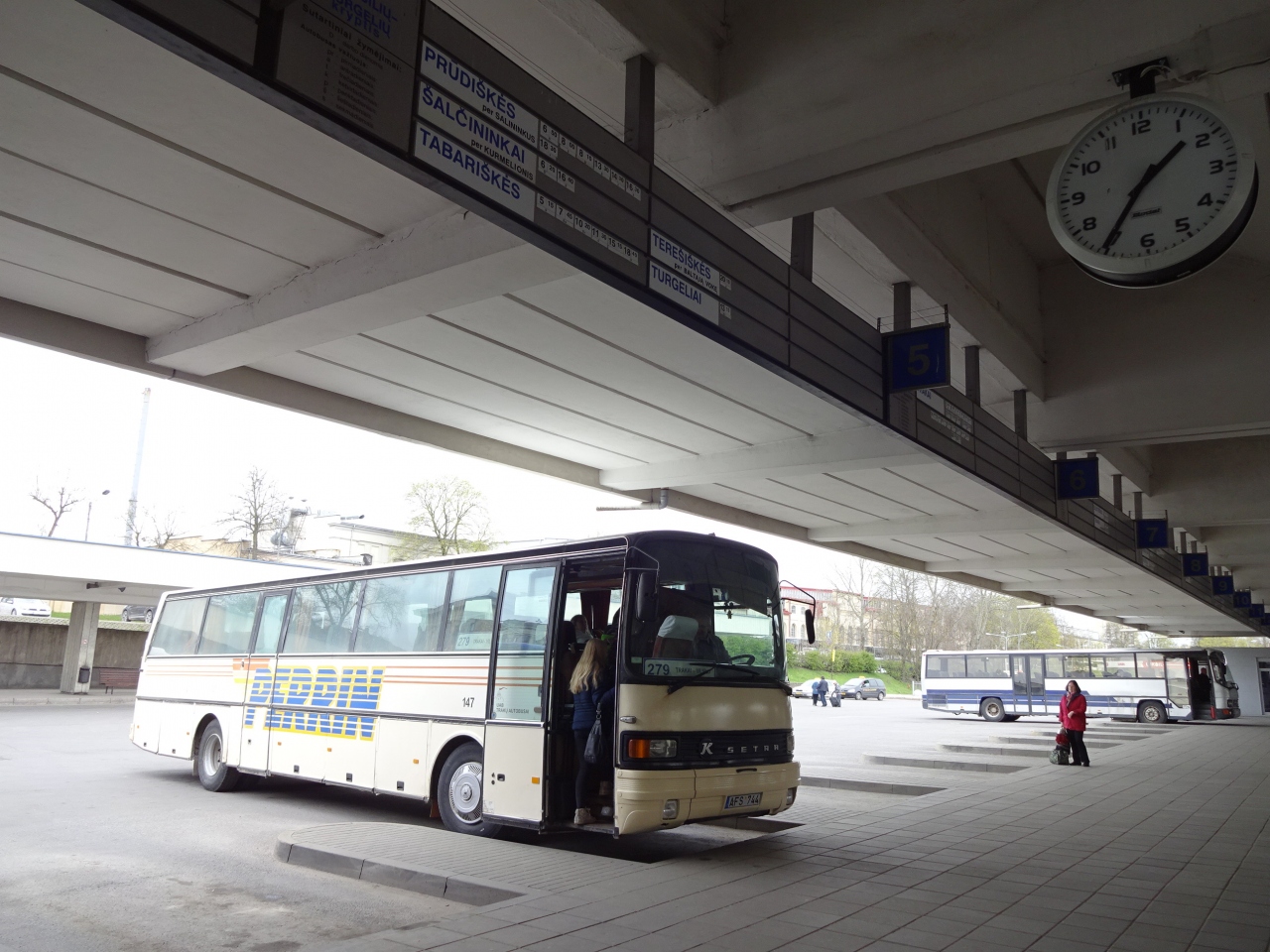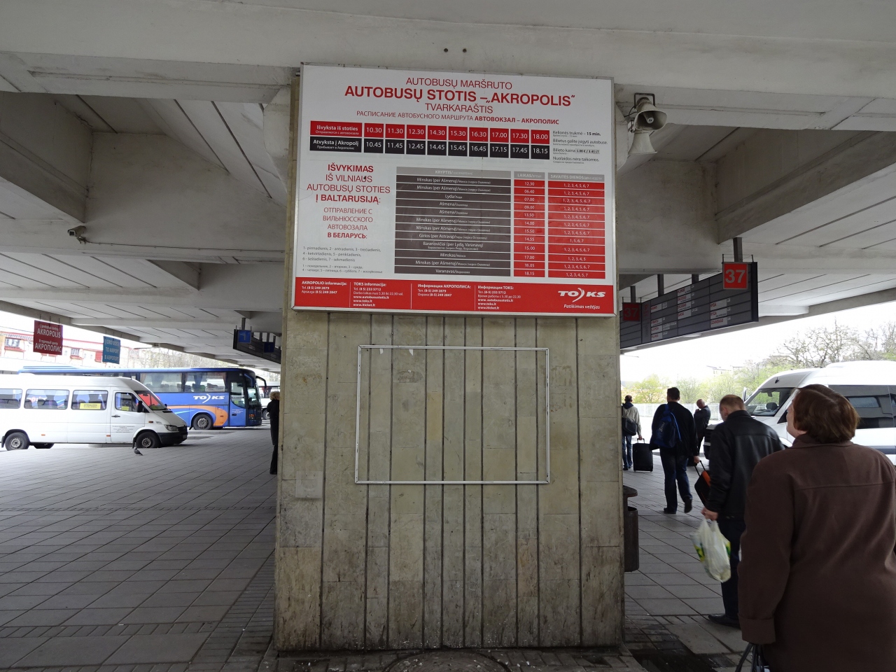 バスターミナルは駅を出てすぐ左手にあります。建物内には色々なお店が入っていました。コンビニに2EURくらいの小さいシャコーティス(リトアニア名物のバームクーヘンのようなお菓子)が売っていましたが、結局買わなかったことを後悔しています。シャコーティスってどこのスーパーにも売ってるけど、どれも一つ1kgくらいあって10EURくらいするんですよね。