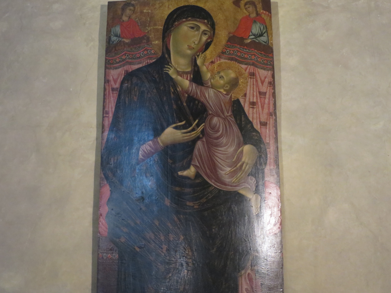 たまたま見つけた教会なので予備知識ありませんでしたが、堂内右奥に作者不明の「聖母子」がありました。後で調べたら20世紀の修復で13世紀の原作が発見されたそうです。