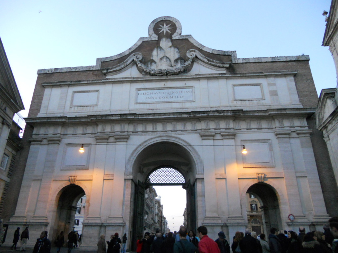 地下鉄フラミニオ駅の出口すぐそばにあります。けっこう大きいです。この門をくぐるとポポロ広場に入り、すぐ左手にはサンタ・マリア・デル・ポポロ教会があります。かつて巡礼者たちは、この門をくぐりローマの町に入っていたそうです。