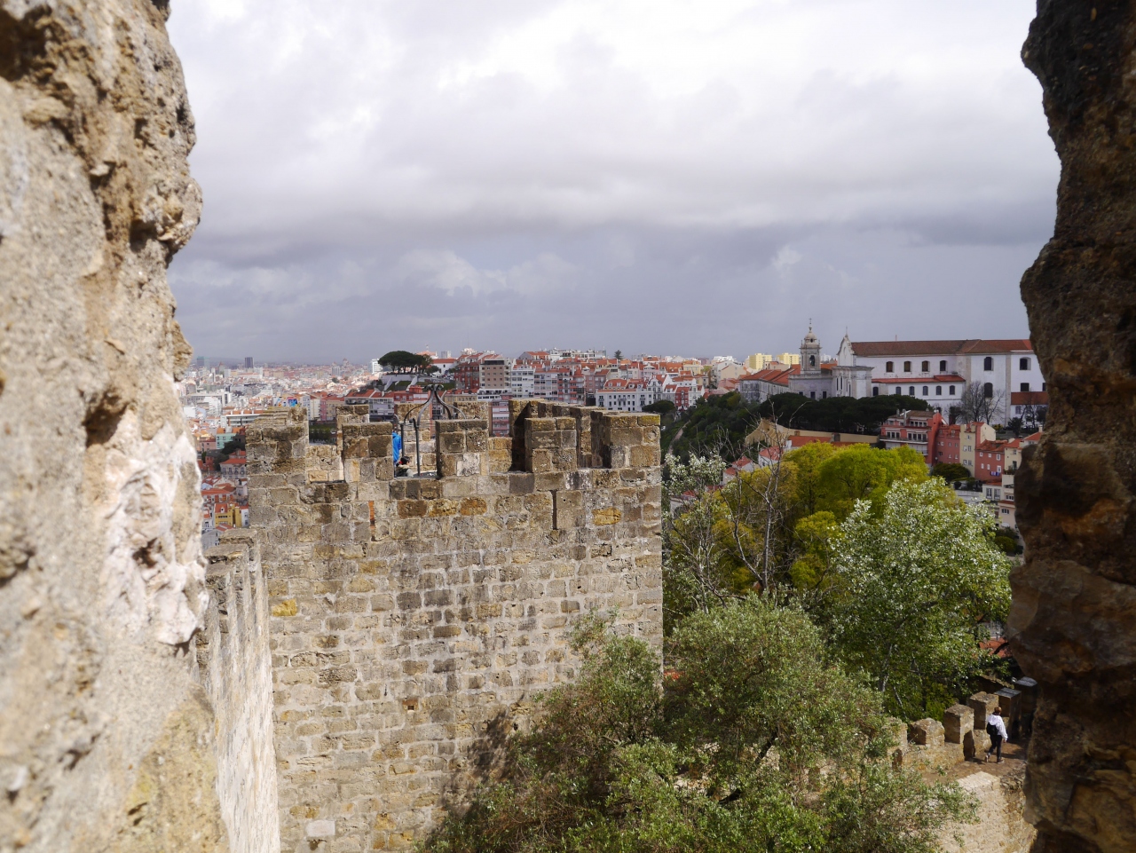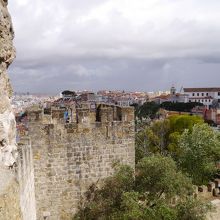 18番の市電の終点であるマルティンモニスから坂道や階段を上っていきます。途中の街並みも楽しめて、あまり苦になりませんでした。この日のリスボンは晴れたり、急に雨が降ったりと気まぐれな天気、入場したときはにわか雨もその後は晴れ渡り、城塞からの眺望を楽しむことができました。