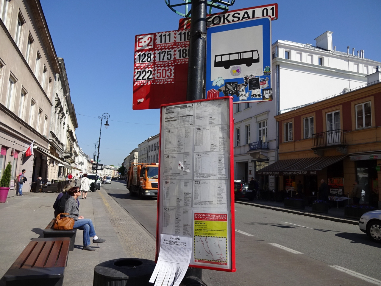1日券(24時間)を購入して、ワジェンキ公園(180番)やワルシャワ・ショパン国際空港(175番)に行く時などに利用しました。車内に路線図が掲示されているので分かりやすかったです。どこへ行くにも便利です。