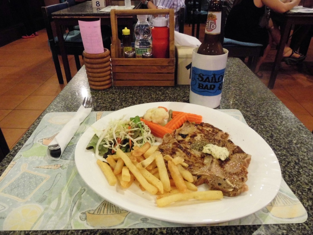 ステーキを注文しましたが、味は普通ですがこの価格では逆に十分な内容。