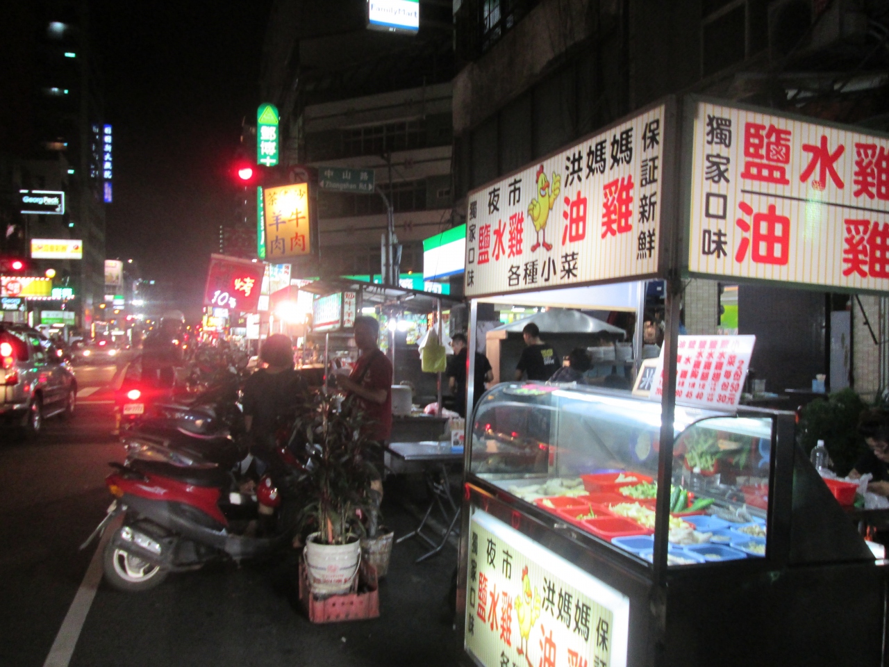 台中駅から中正路を北西に向かって行くと中華路の交差点に、広い通りの中華路沿いに夜市があります、歩行者天国ではなく多くの車が通りますので注意しながら歩くことになります、飲食店中心に屋台・露店が出ています、お店の数は少ないのと人が少なかったです。