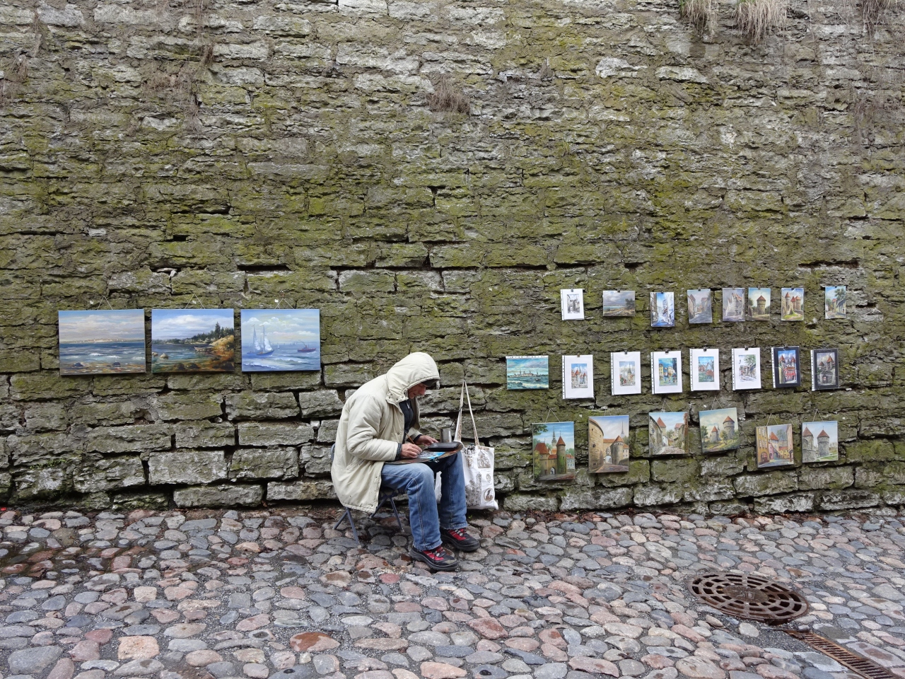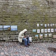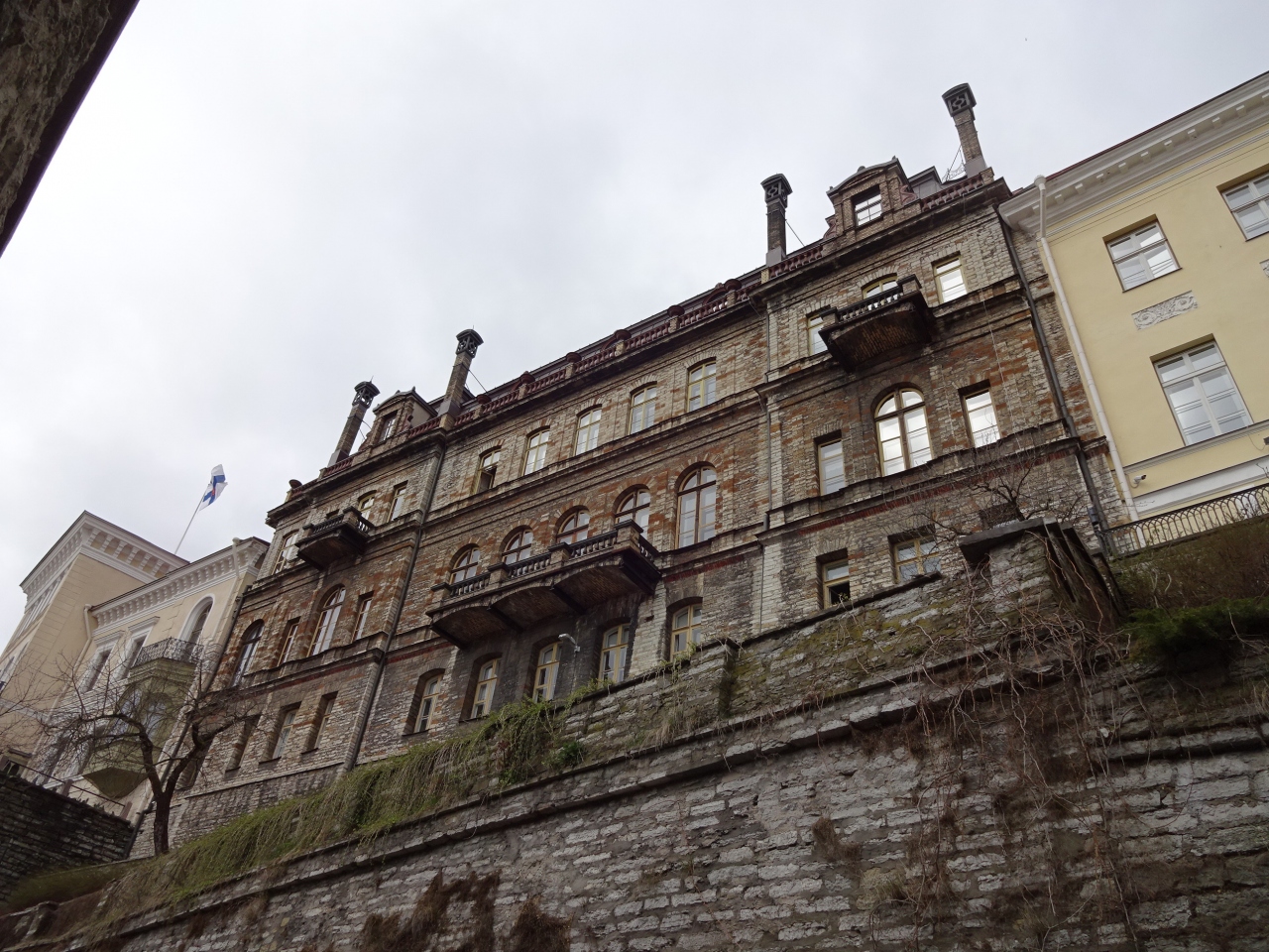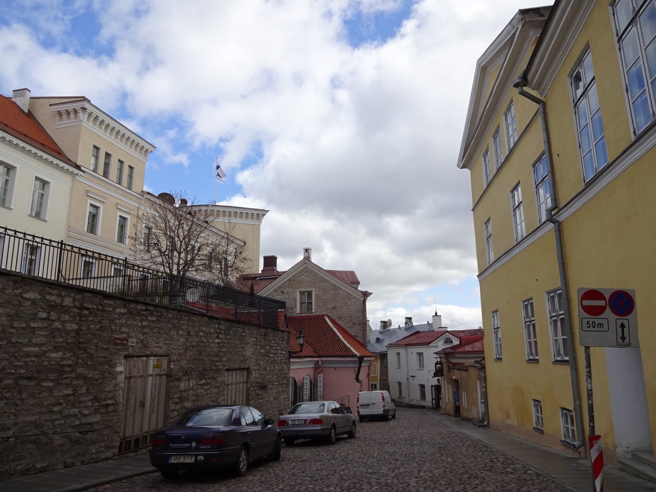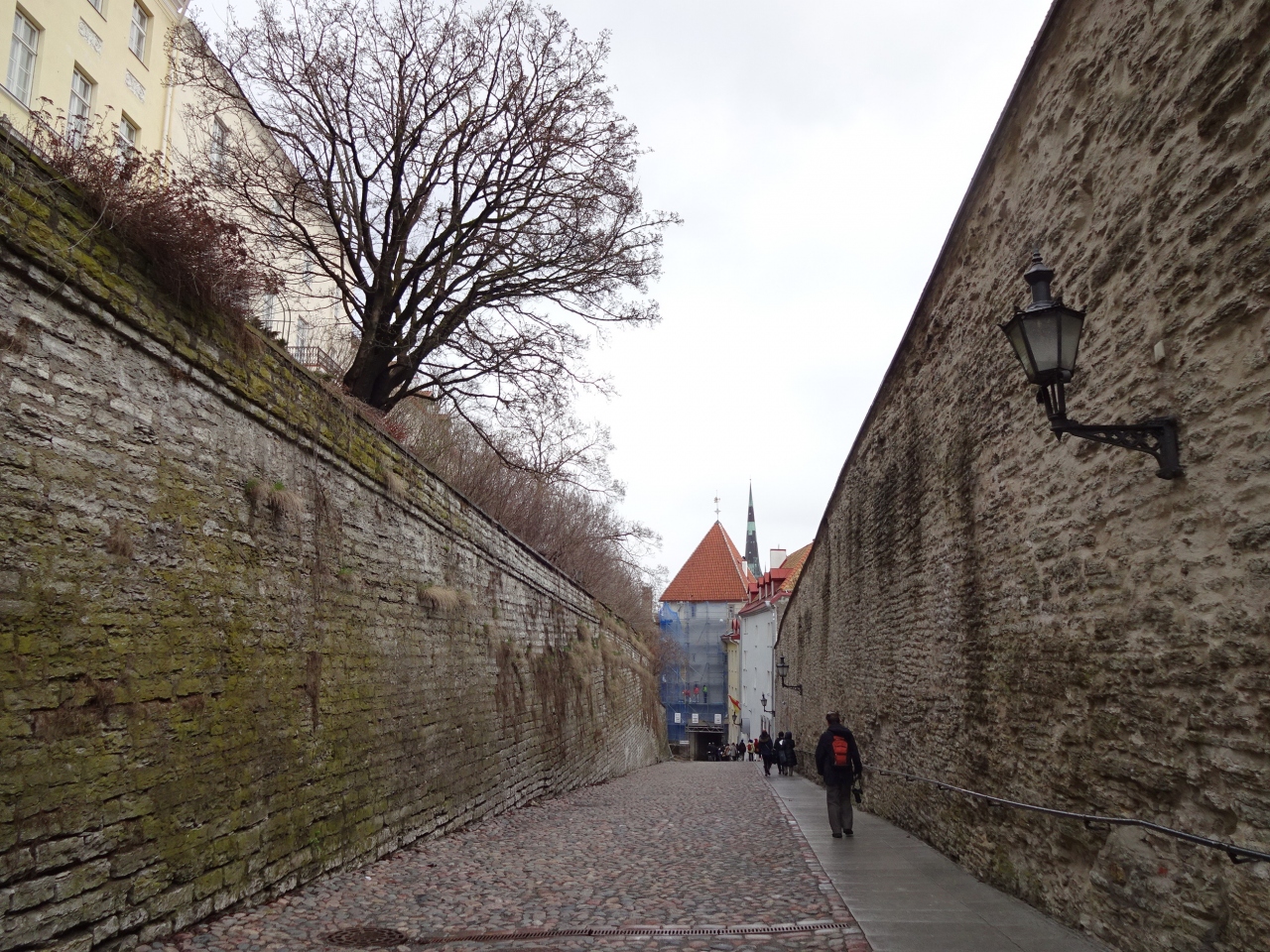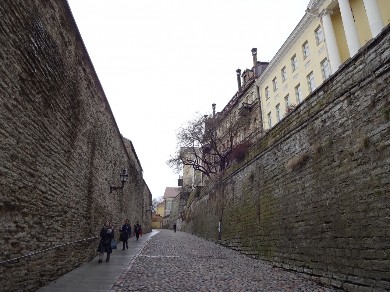 旧市街からトームペアに上る坂道です。入口には塔がありますが、補修中らしく足場に囲まれていました。