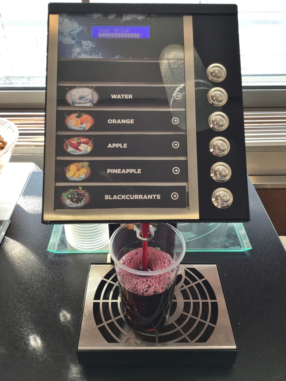 出国審査直後にあるラウンジ。Priority Passで使えるラウンジとしては比較的充実しているほうだが、ビジネスクラス利用時のラウンジとして考えると少し物足りないかも。ホットミール無し。アルコール含め飲み物は充実している。軽食美味し。ラウンジを出てエスカレーターを降りないとトイレに行けないのだけちょっと面倒。搭乗ゲートに行くには免税店を通らなければいけないが、小さな空港なのであっというまにゲートに着ける。