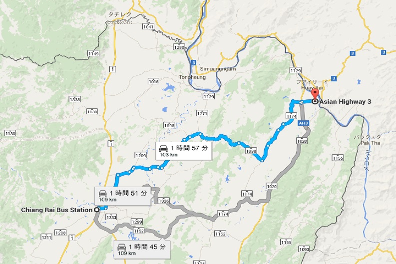 チェンライからチェンコンへのバスは、経路にもよりますが、約100kmの距離を2~3時間の時間で結んでいます。