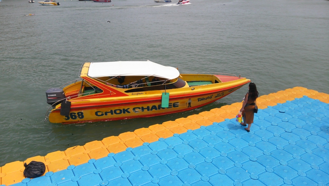 ここから船に乗ってラン島へ行きました。船にはいくつか種類があり、行き先も値段も時間も違うので、確認して乗りましょう。一番安いのは片道30バーツの大型船です。