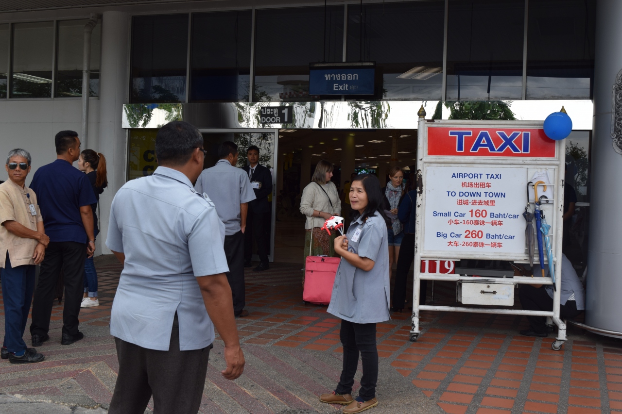 チェンマイ国際空港、国際線出口から国内線チェックインカウンターがある左手にフロアを歩き、チェンマイ空港ターミナルを出た。