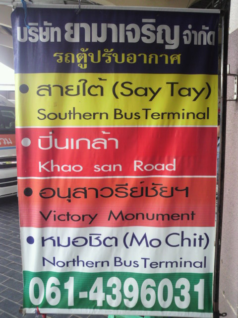 バンコクには、南のサイタイ及び北のモーチットバスターミナルばかりではなく、戦勝記念塔駅やカオサン通りに行くバス等もあります。