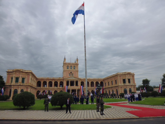 アスンシオンの中心から川沿いに歩くとあるのがこの政府宮殿です。大統領府になっていてこの日は国旗もなびき多くの警備の人がいました。