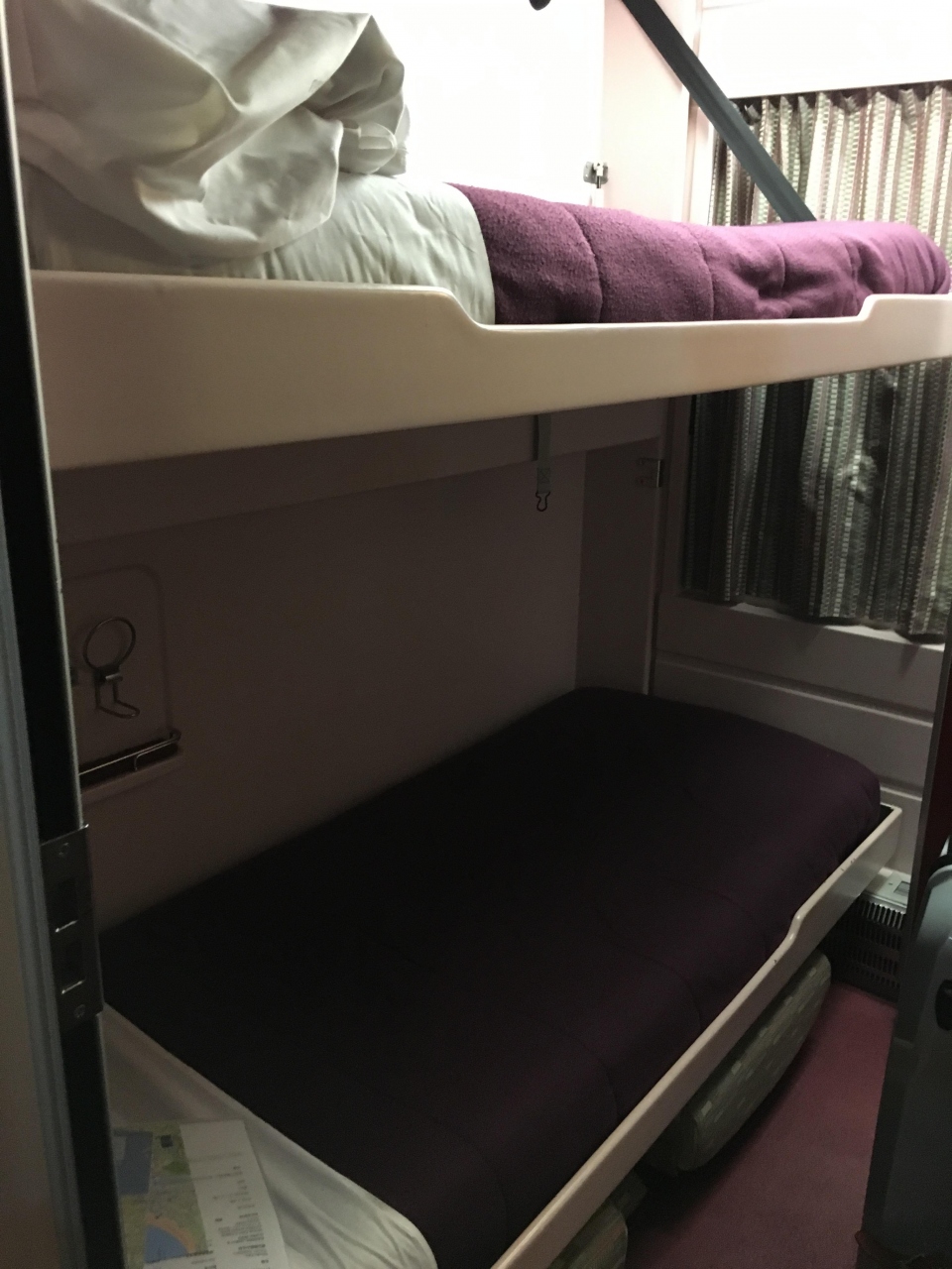 列車の個室なので閉所恐怖症の方には向かないと思います。後は下の段で寝る方はレールの振動と音がきになると思うので耳栓などを使用した方が良く眠れると思います。