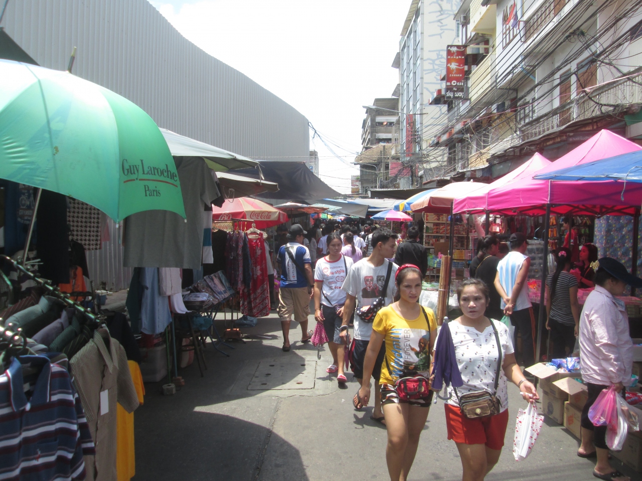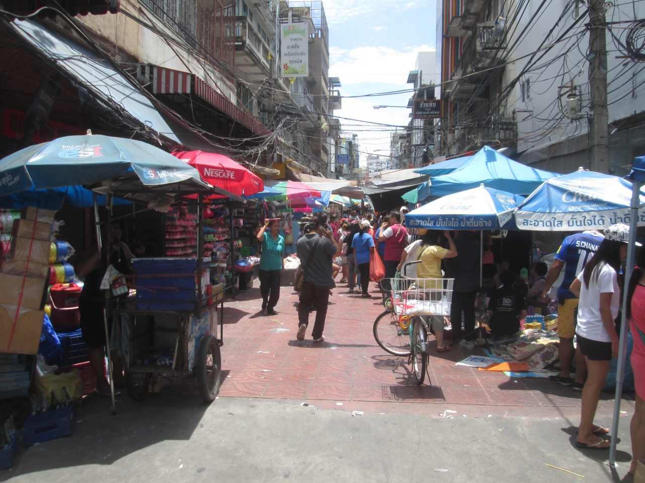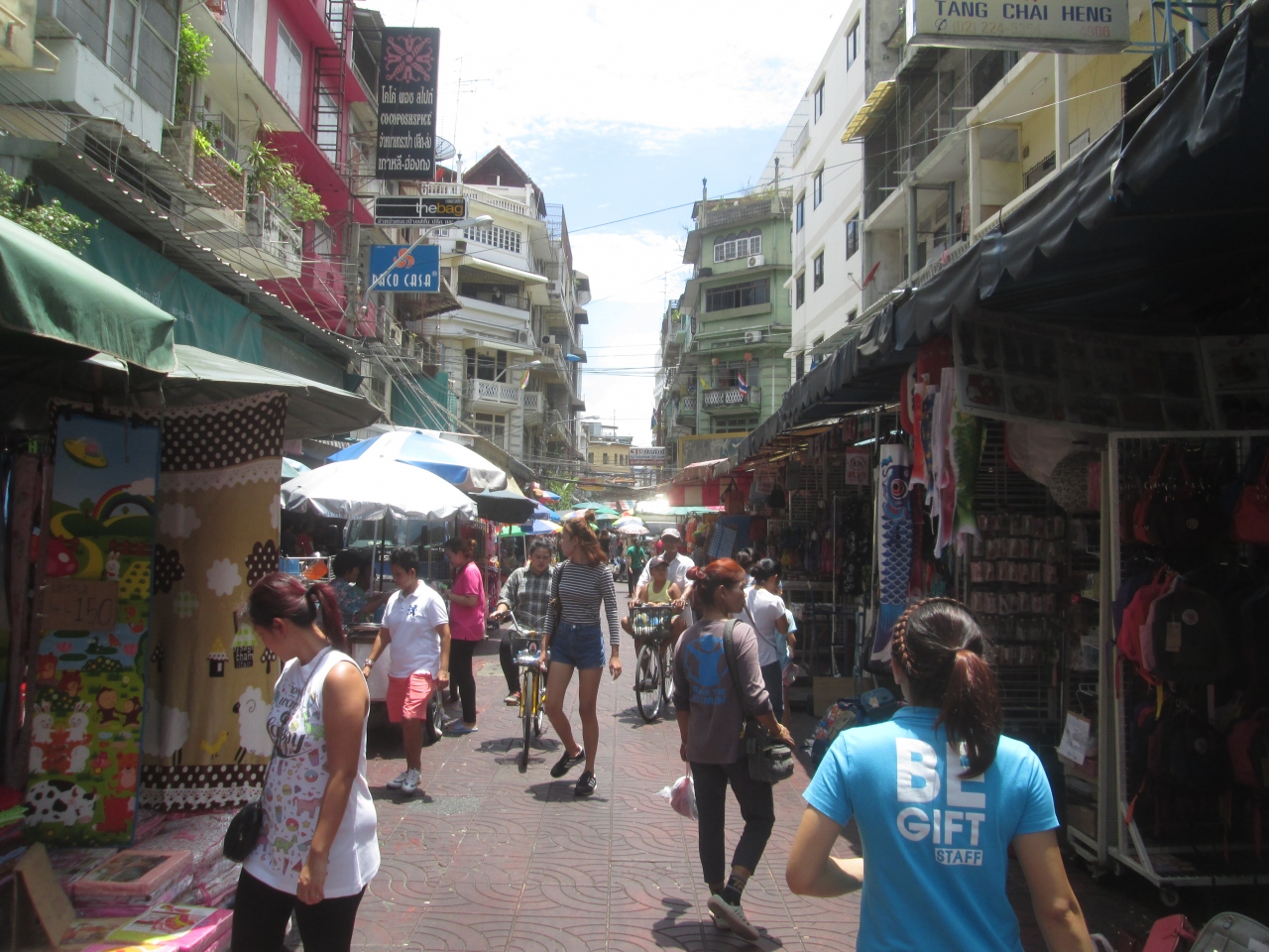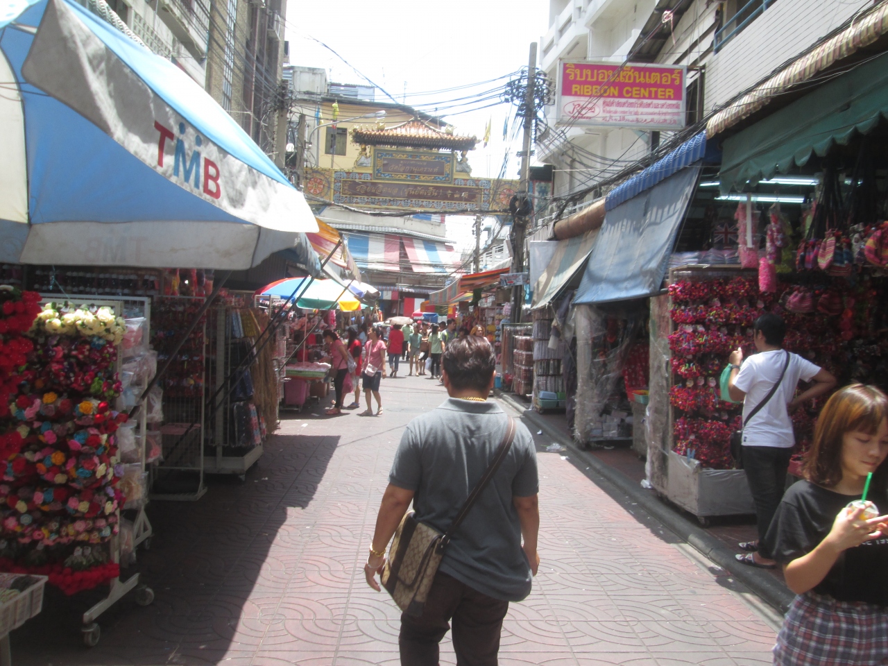 ワニット通りのソイ1にある市場です。2、3メートルほどの道幅の両サイドに、アクセサリーなどの雑貨、靴、バッグ、布地、ディスプレイ用品や包装紙などのお店が並んでいます。通行する際、すれ違う人を避けながら歩かなければならない狭いエリアがありました。