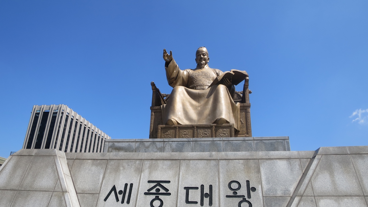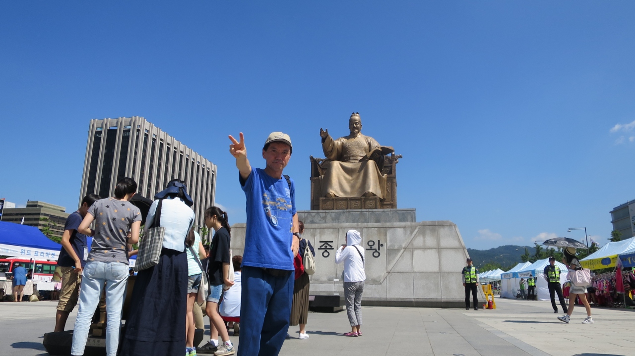 ソウル市役所から景福宮に通じる大通りの中央分離帯に世宗大王像があります。中央分離帯は、イベント広場になっていて私が行った日もイベントが開催されていました。
