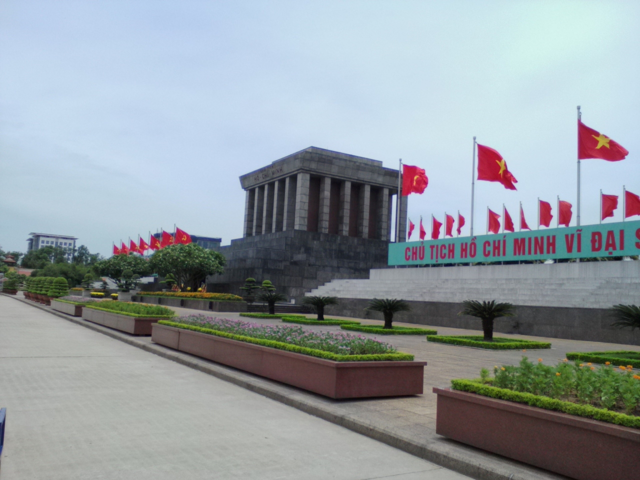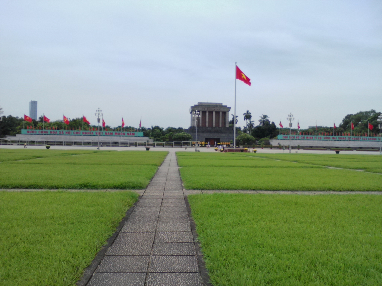 もちろん内部も見学できますが時間、服装、持ち物などの制限があり人も多くかなりの“重労働”です。内部を見たら次は外から眺めて見ましょう。絶好のスポットがバーディン広場です。芝生も植えられていて広々とした気持ちのいい場所です。ホーチミン廟をバックに写真を撮ることもできます。ただ近づき過ぎて黄色のラインを越えてしまうと警備兵に笛を吹かれてしまいますのでご注意を…。