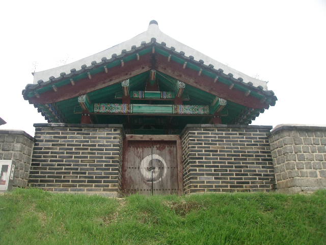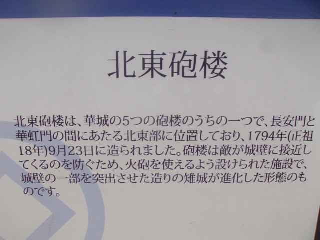 水原華城城壁沿いに幾つか見られる砲楼の一つですが、砲楼に関してはどこも似たような風情で、内部公開されていないという点で共通しているのかなと感じました。この北東砲楼に関しても、こじんまりとしていて、特に珍しい外観でもないので、観光客の多くは素通りされている雰囲気でした。