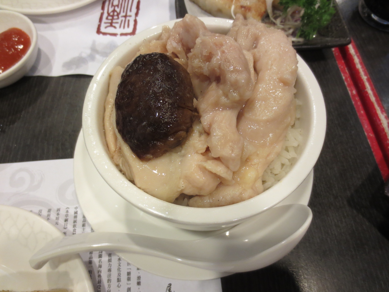 特製スープは、まるで残り物のごった煮という感じで、レンコン・トウモロコシのぶつ切りやら、何かのお肉の骨やら、イカの足やらが入っていました。具は出し殻、スープの味は薄く、まずかったです。