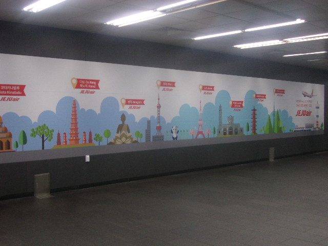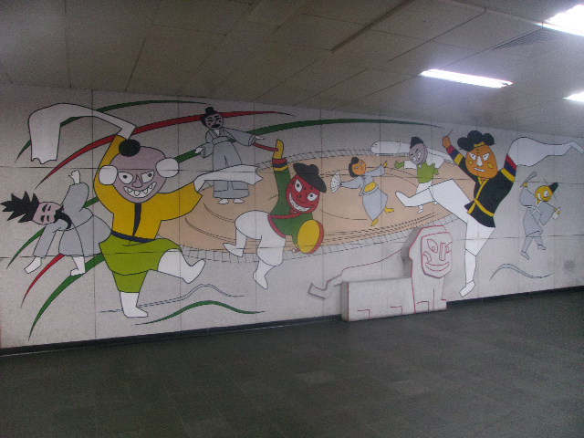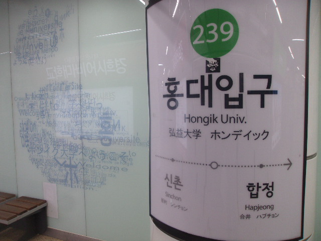 この駅は、空港鉄道の開業後、急激に知名度を上げたように感じますが、それ以外にも京義線も経由していたりと、それぞれの路線のホームの雰囲気の違いを楽しんだりするのにも良い駅です。私は空港鉄道側のホームの壁画が気に入っていますが、そもそも地下鉄2号線から乗り換える際、空港鉄道乗り場までの長い通路を歩く途上で、空港に通じる、という意味で、航空会社の広告なども多く見られたり、韓国内の航空機による旅先として一番人気のチェジュ島の写真展を開催していたりと、ここを歩くだけで結構テンションが上がるのでお勧めです。