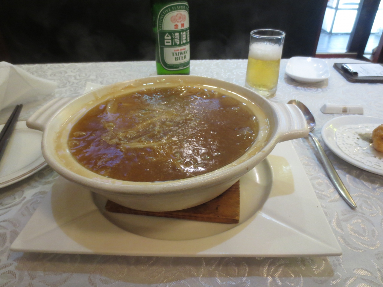 ガイド本、台北の観光紹介サイトに出ている日本人向けには有名なフカヒレ等の海鮮レストランです。本当はゴールデントップ(金頂)あたりでパーっと行きたかったのですが、1晩で数万円使うほど予算的に余裕は無く、今回は、こちらのお店で夕食を取りました。