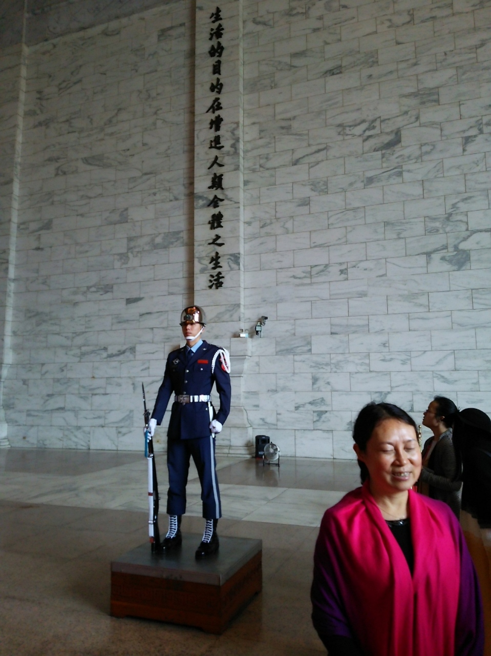 中正記念堂の衛兵交代儀式。他の場所でも衛兵交代は観ることができますが、交通の便利なこの場所でいつも見学します。衛兵さん達、すごく訓練されているようで、動きにまったく狂いがないです。響くブーツの音や銃の素早い動きに感動してしまいます!