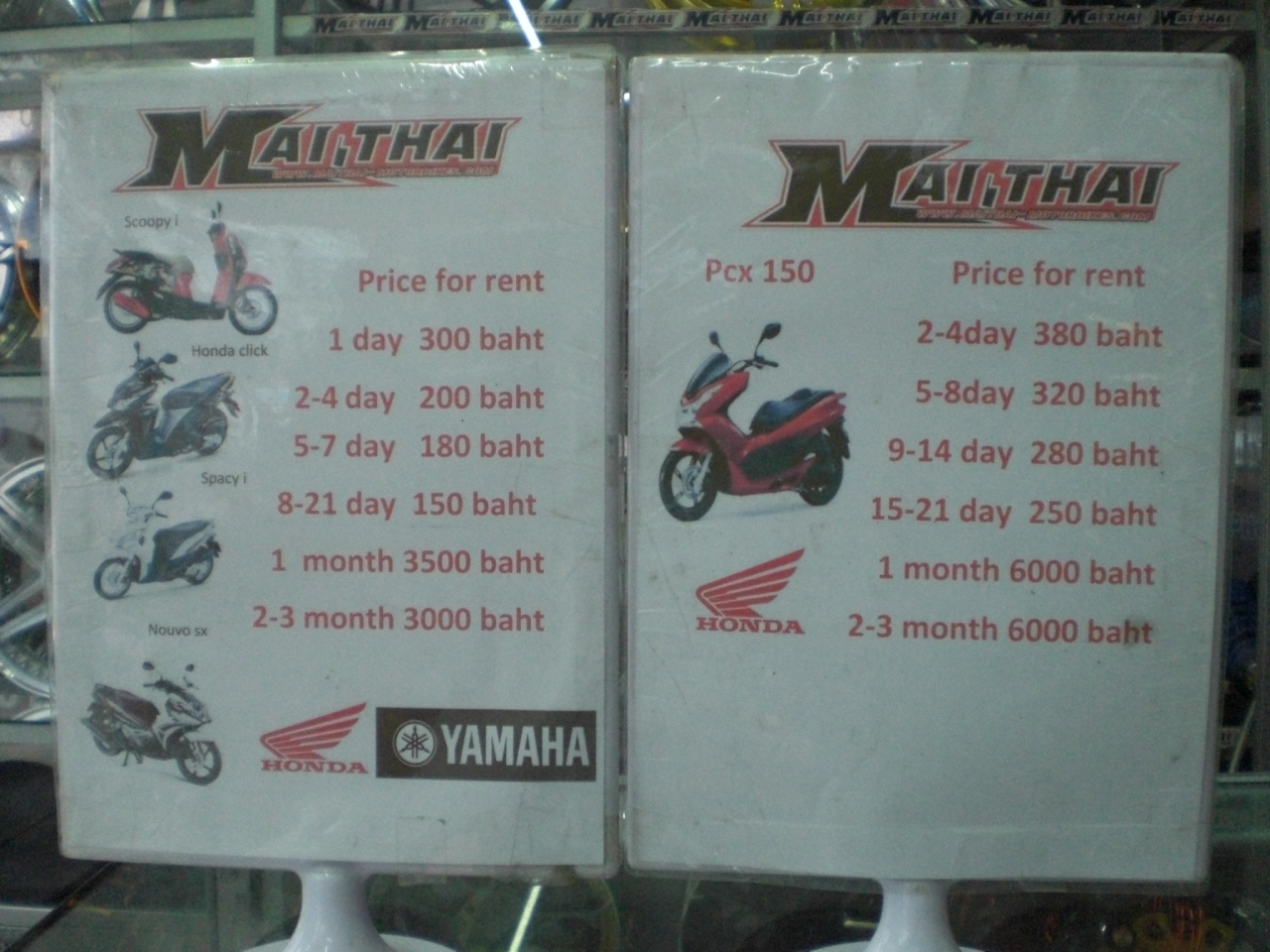 気になるレンタル料ですが、日額250~300バーツのようです。