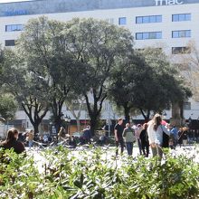 行った時はデモ隊がカタルーニャ広場の横の道をデモしていました。