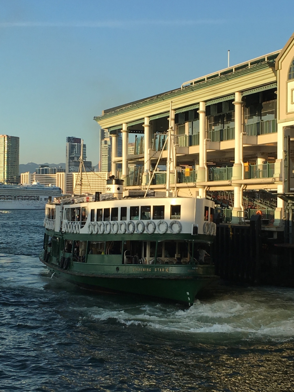 中環のフェリーターミナルから九龍へスターフェリーに乗船。ものの10分程度の船旅ですが十分に観光気分を味わうことが出来ました。