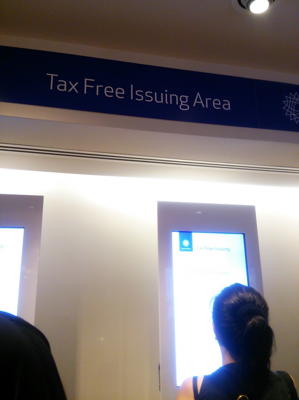 タックスリファンドはタッチパネル式のボードで自分で必要事項を入力する方式でした。やり方が分からなくても近くにスタッフがいるので助けてもらえます。パスポート番号や名前を入力してレシートのバーコードを読み取らせるだけで簡単に手続きができました。
