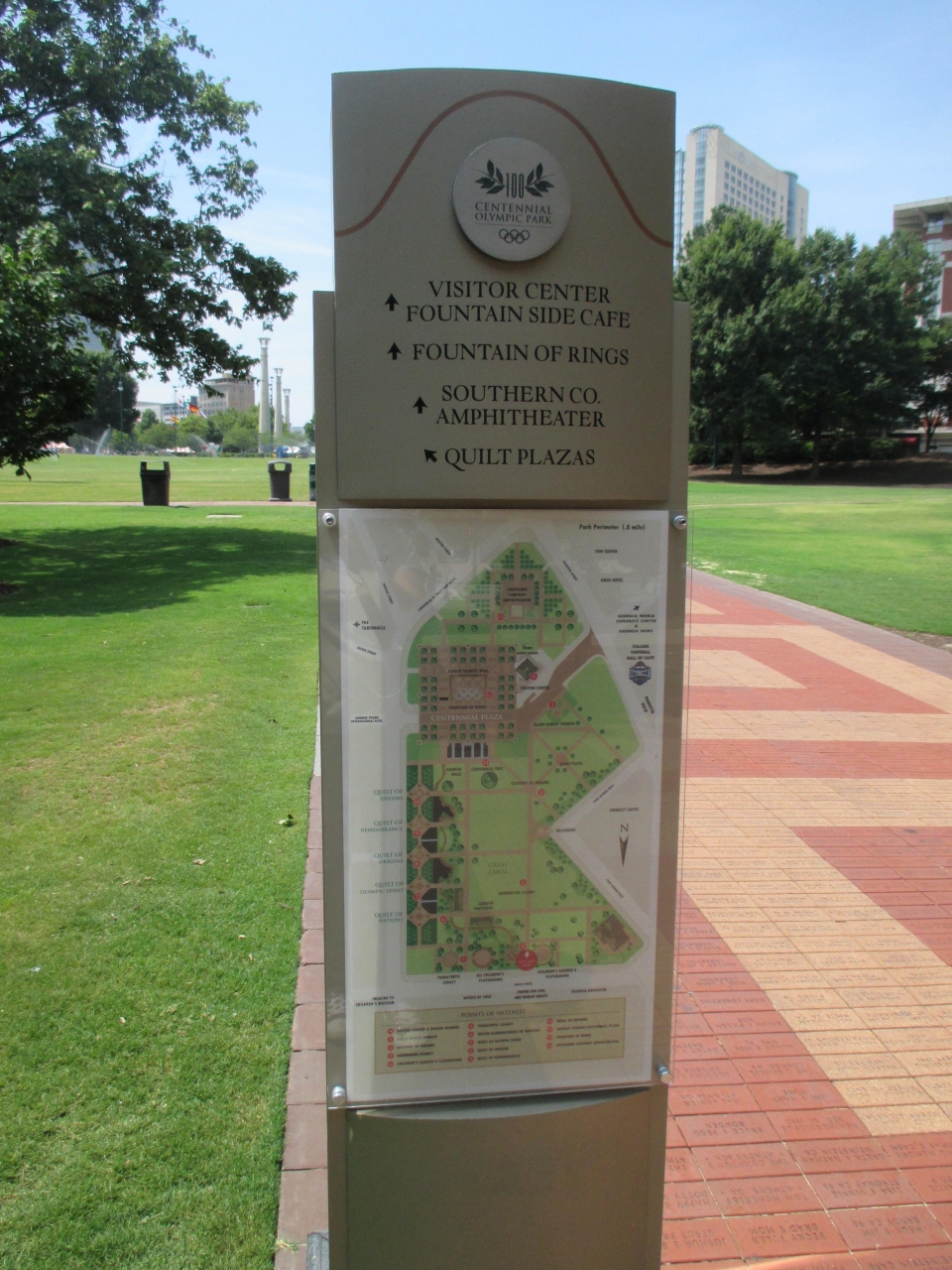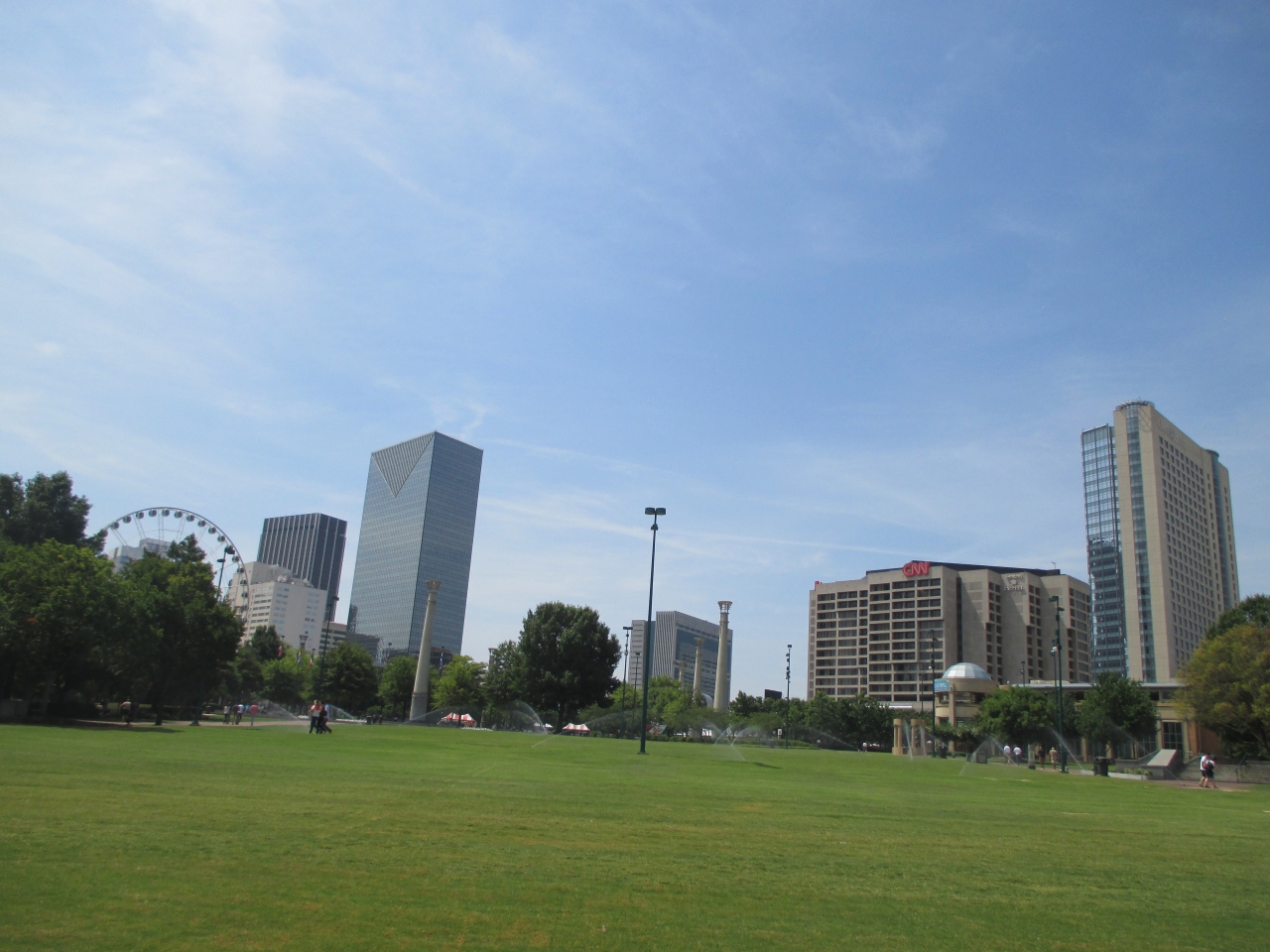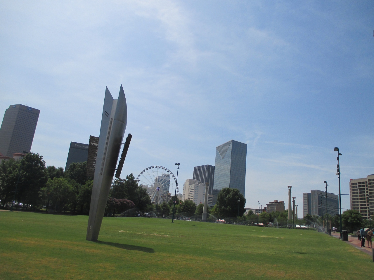 センテニアルオリンピック公園は観光しやすい公園です。周りにはワールドオブコカコーラ、CNN、観覧車、水族館があります。オリンピック100周年に設立されたようで、今でも記念の公園だと思います。遊具などにもオリンピック100周年記念のロゴがありました。