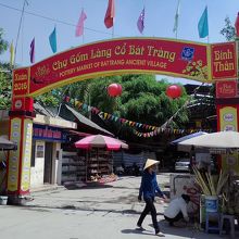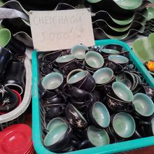 バッチャンには焼き物のショップが数多くありますが、この市場は1ランク下の店が集まっている印象。良く言えば安くて買いやすい。悪く言えばチープ。しかしショップの値段は物の善し悪しは別にしてかなり高めの設定です。おそらくツアー客相手ということもあるでしょうし、商品に店の名前が入っていますからそれで差別化しているのかもしれません。同じような物でもショップと市場の店では値段は違います。それほどこだわらなければ市場の方が断然安く買えると思います。例えばシンプルなぐい呑なら1個5000ドン、鯉やアヒルのかわいらしい置物なら1個1万ドンで買えます(写真参照)。最初に市場をさっと見て値段をチェックしてからショップを回ってはどうでしょうか。
