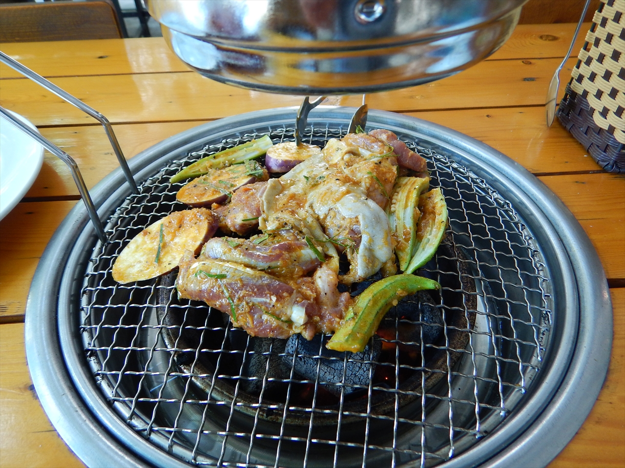 とても開放的で、良い雰囲気です。各テーブルに排煙筒が下がっていますが、雰囲気が良い為か、気になりません