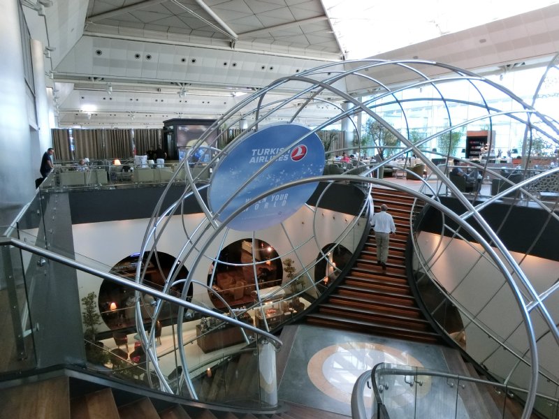ターキッシュエアラインズの、イスタンブール アタチュルク国際空港のラウンジです。2層に分かれたラウンジは非常に広大で、シェフがその場で作る料理やターキッシュピザ、デザートなどの提供があり食事は充実しています。お酒はまぁ、ほどほどでしょうか。ファーストクラスの無い同社なので、特にゾーンは区別していませんでした。