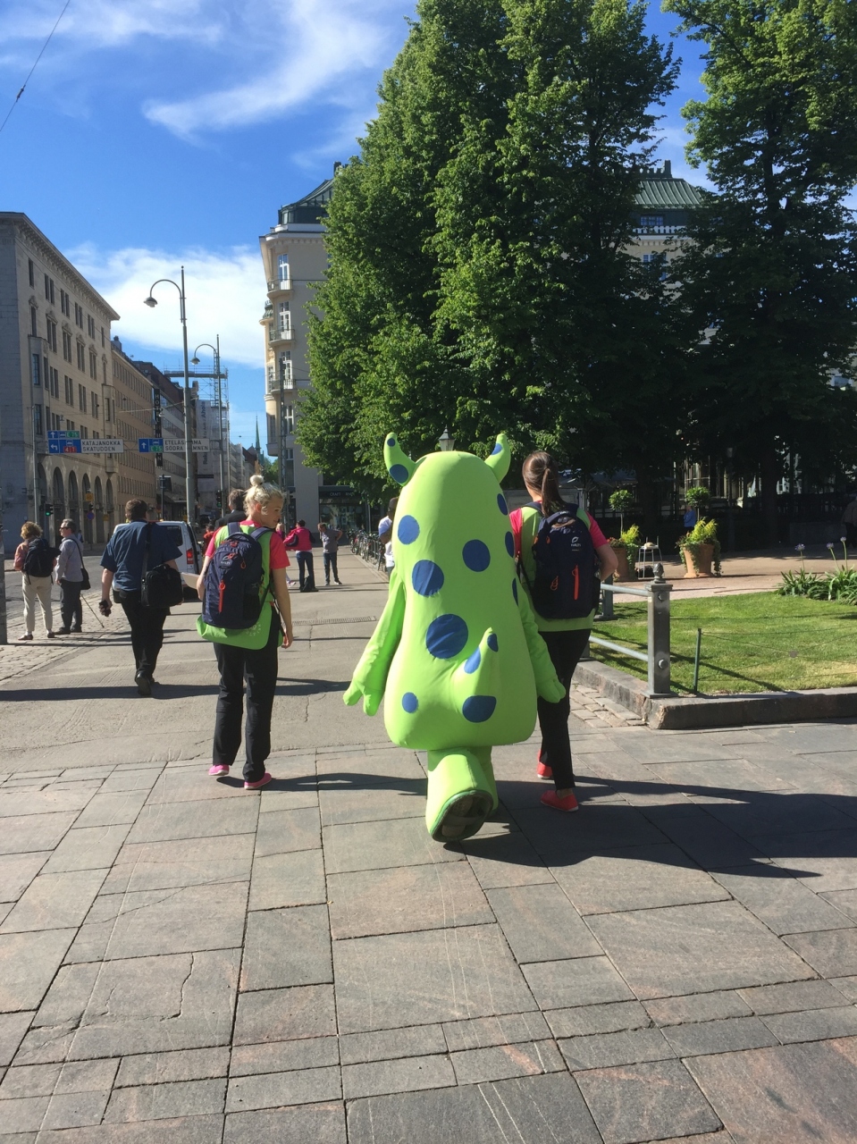 ヘルシンキのメインストリートの一つ。石造りの建物が並び、マリメッコなどのお店やオープンテラスのカフェなどがある。公園に面していて、公園を通る人が多く、通り自体はそれほど混んでない。歩いていて、ヘルシンキ気分に浸れる、雰囲気がいい通り。