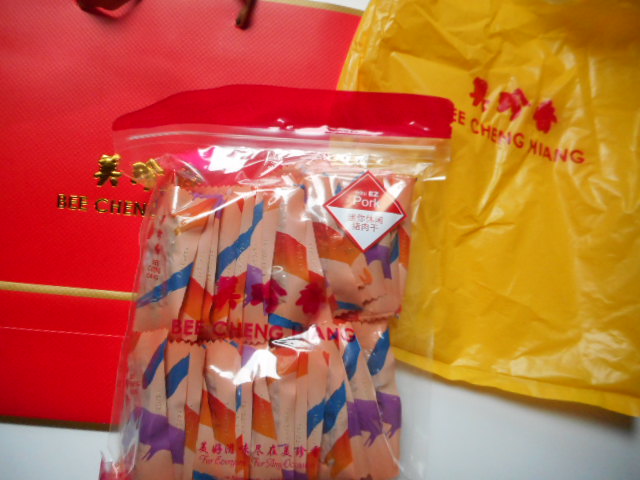 シンガポールの牛、豚、鶏肉のジャギー店で、味も甘、チリ味、チーズ味とあり、チャイナタウン、高島屋、あちこちに出店が在り、分包になっている袋詰めがギフトに便利です。店頭で焼いているので、試食もさせてくれます。只、肉類の日本持ち込みはチェックをされますので、要、注意です。
