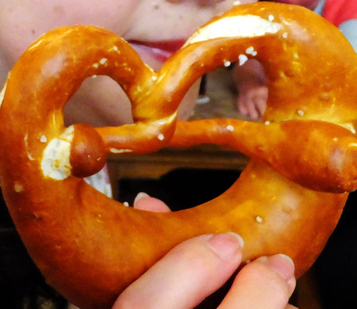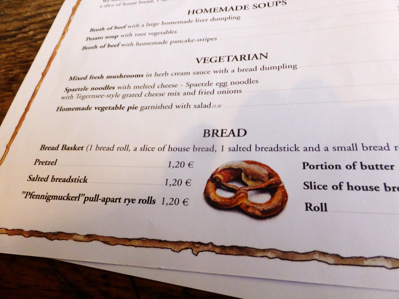 おつまみはプレッツェルだけで私たちは十分でした。隣の3名のドイツ人家族連れは売りに席を回ってくる大きなプレッツェルを3人で食べていました。