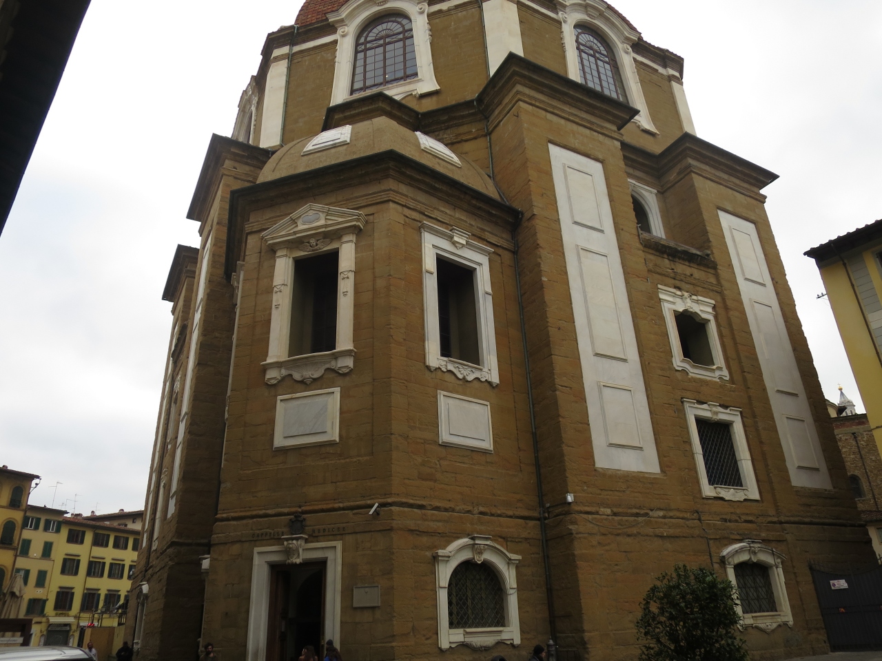 フィレンツェのサン・ロレンツォ教会の旧聖具室から教会の後陣を挟んで反対側にメディチ家礼拝堂があります。入口も教会の反対側になります。